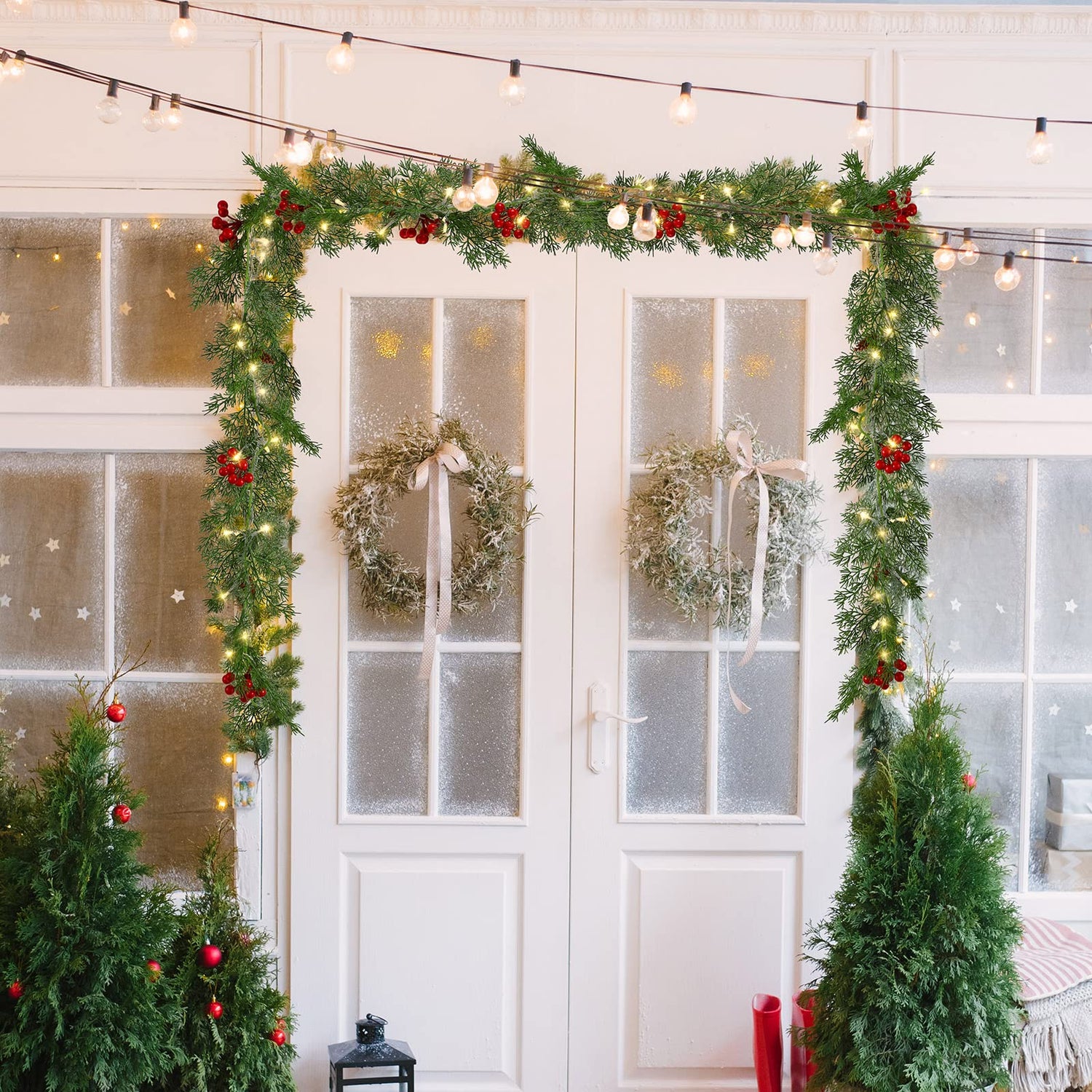 • Sturdy Material to Serve You: with light design, this outdoor garland adopts a fixed branch, not easy to scatter or break, serving you for long periods of time, adding a happy and enjoyable Christmas atmosphere for your family