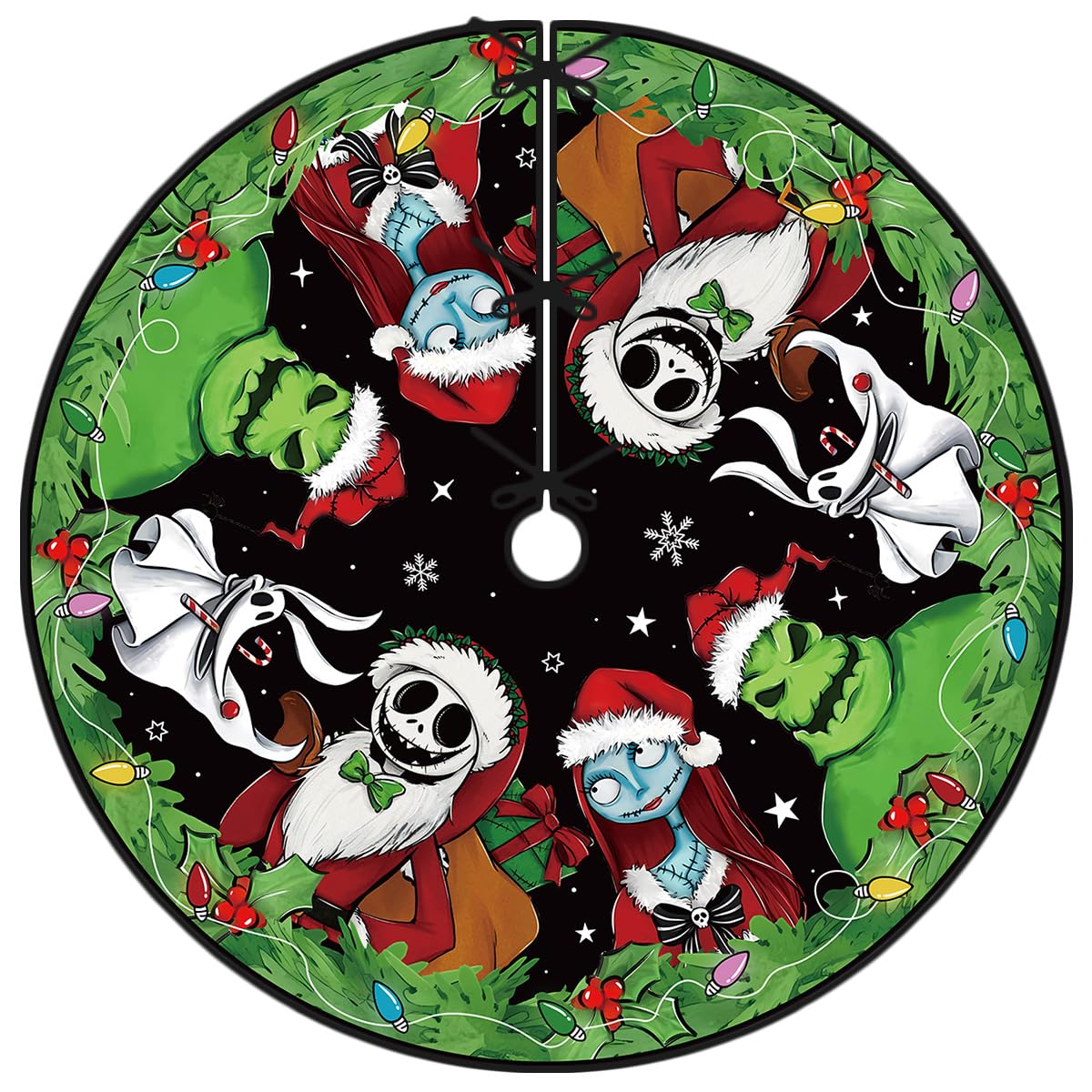 • ADD THE PERFECT CHRISTMAS AMBIENCE: Our product is uniquely designed with brightly colored prints to add a splash of color to your holiday decorations. The tree skirt can cover the tree stand and any unsightly wires, making your holiday home look neat and complete.