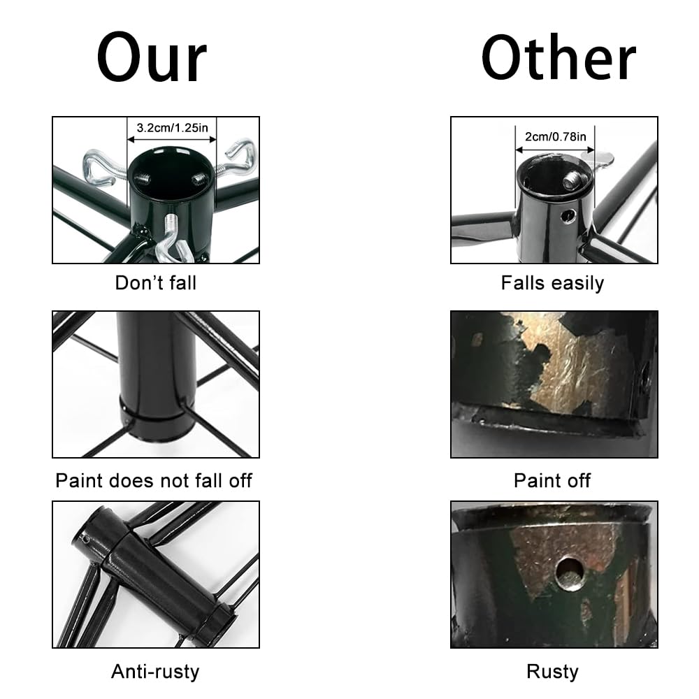 • High quality and durability:For use with 4 ft. To 8.5 ft. Tall artificial trees,Sturdy folding metal stand, tree base is made of iron for your home artificial Christmas tree