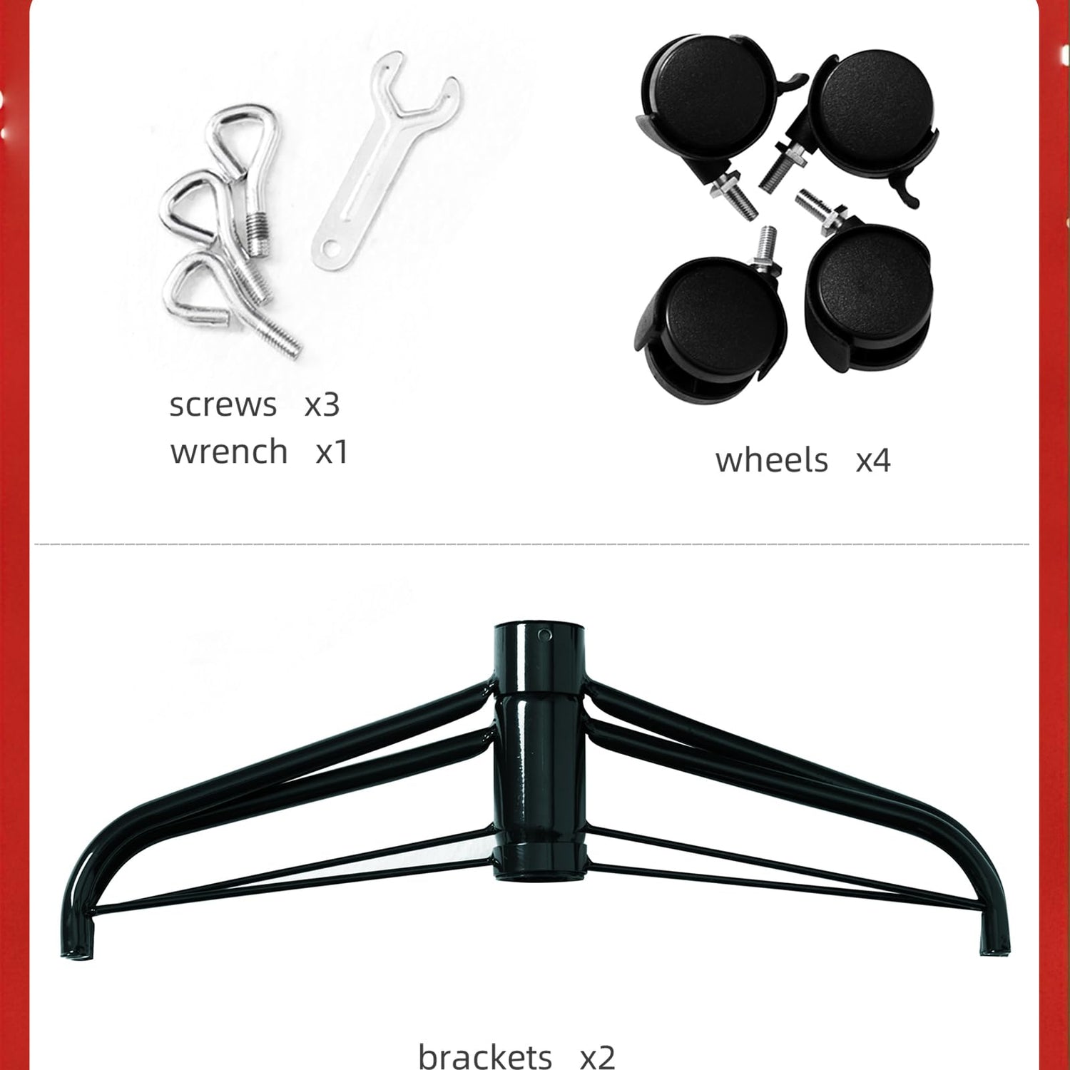 - Easy to assemble: Our Christmas tree stands for artificial trees boasts a user-friendly design that allows for quick assembly. Simply insert your tree into the stand's central hole, secure it with three screws, and attach the rolling wheels using the four eye bolts for effortless mobility.