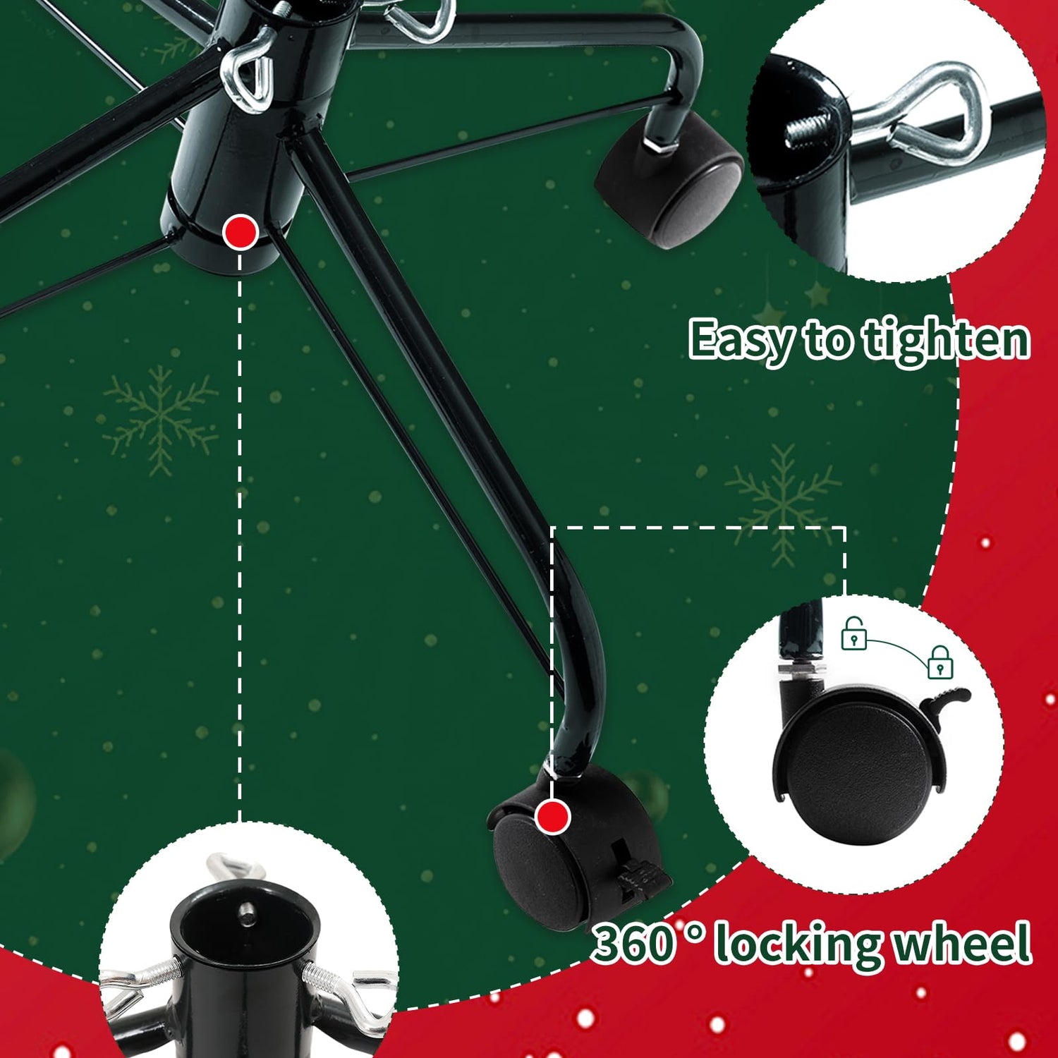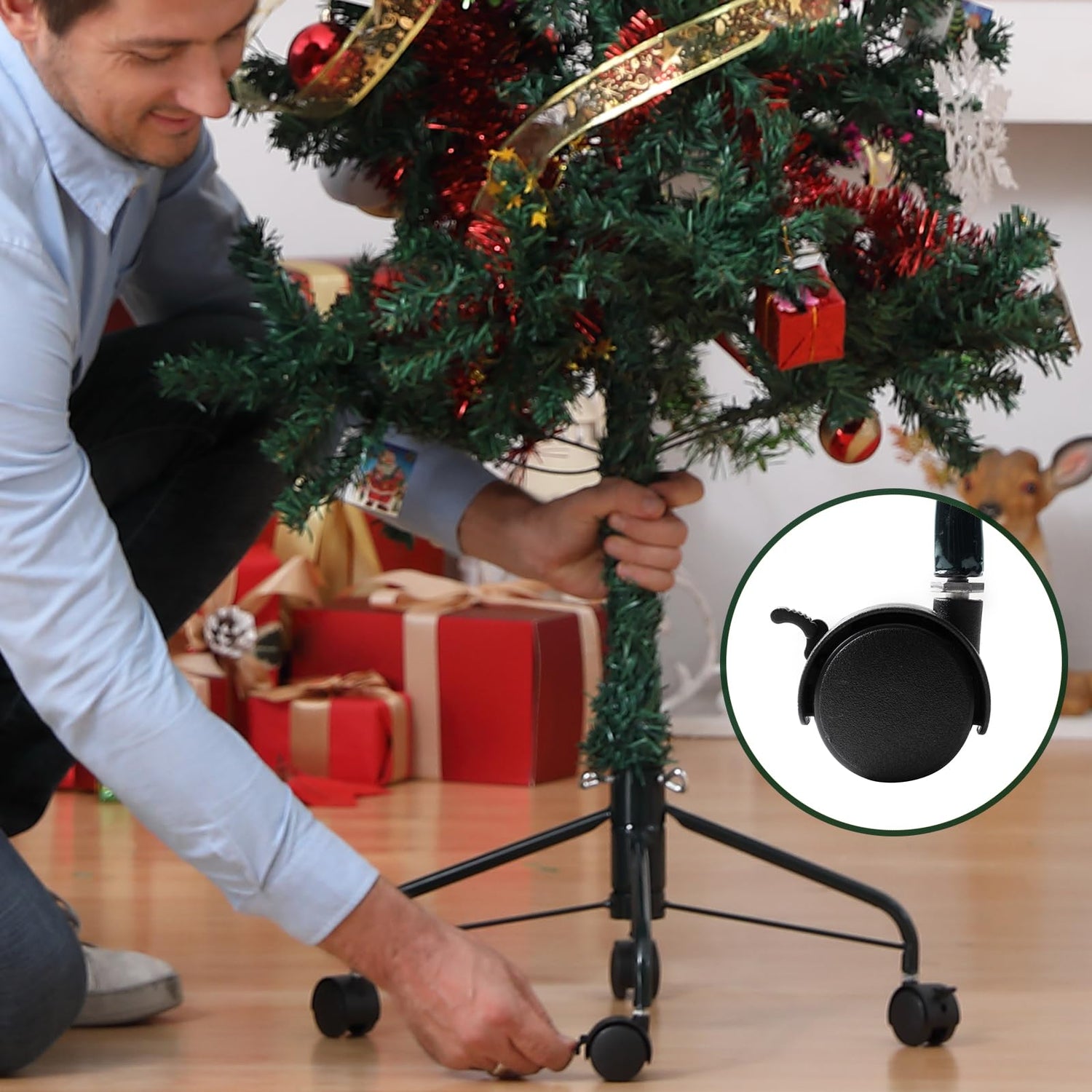 - Rolling Christmas Tree Stand : Bakcover Christmas tree base features four rolling wheels that allow for 360-degree movement, making it easy to relocate your festive decoration to any corner of your living room or dining area. Two of the wheels are equipped with a locking mechanism to ensure that your tree remains securely. The christmas tree stands wheels are made of scratch-resistant materials that lovingly protect your floor from damage.