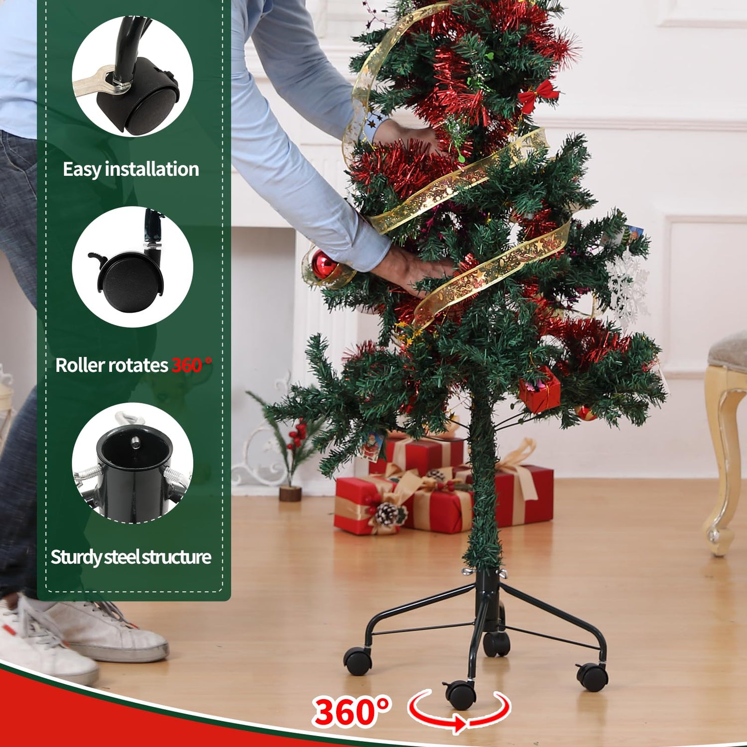 Christmas Tree Stands for Artificial Trees, Artificial Christmas Tree Stand with Wheels,Rolling Christmas Tree Base for 3 Ft to 6 Ft Artificial Christmas Trees, fits 0.5-1.25 Inch Tree Pole, Green
