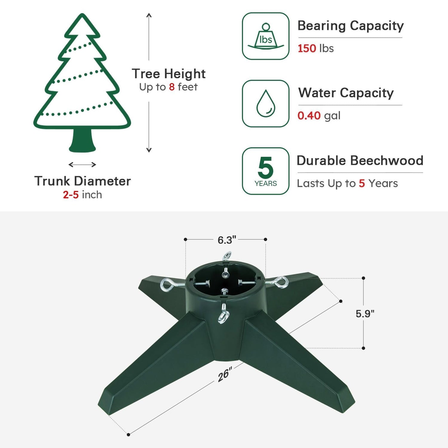 - Product Size: With a maximum trunk size of 5 inches and a leg span of 26 inches, this tree stand is perfect for a variety of tree sizes. Prior to purchase, we recommend measuring your Christmas tree to ensure a proper fit with this stand.