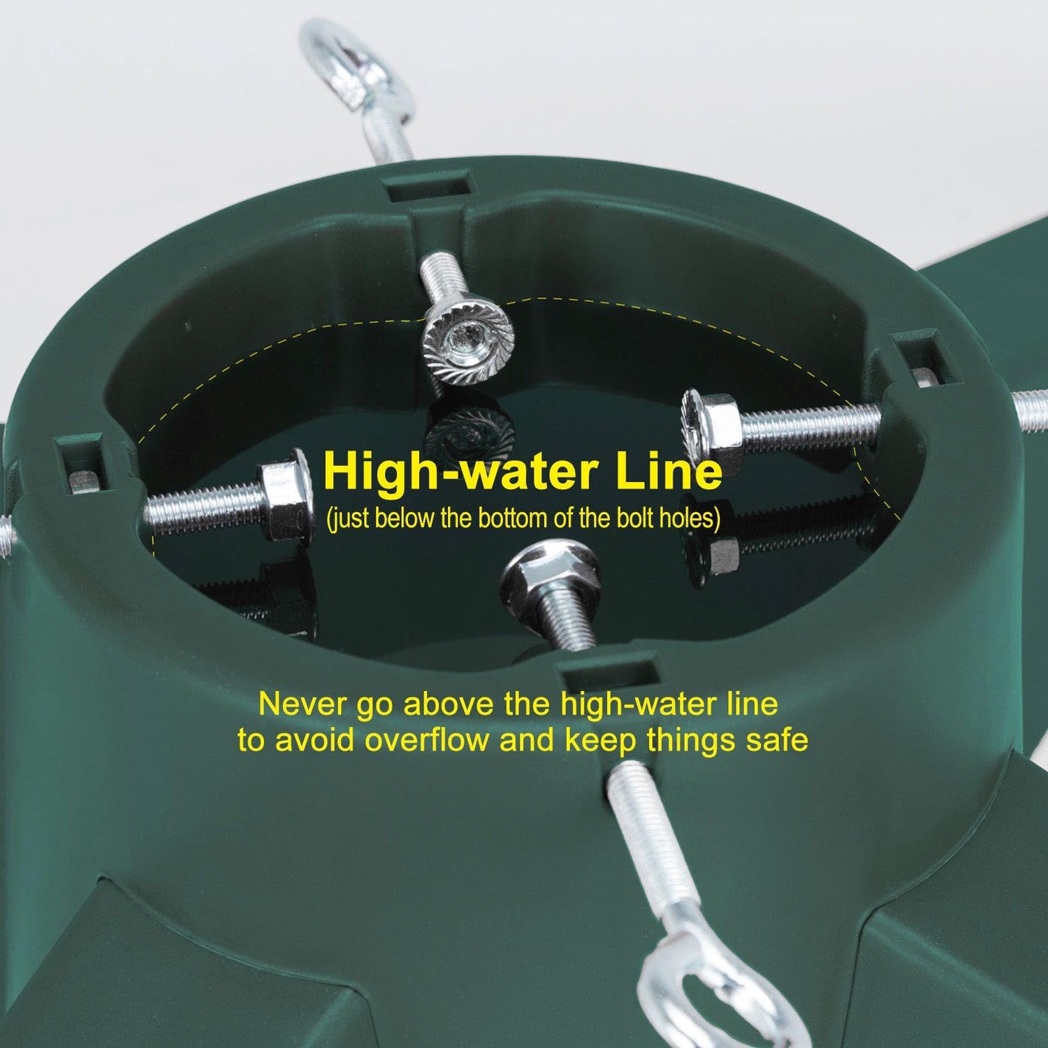 - No Leakage: The water reservoir can be filled up to 0.35 gallons, will keep your tree fresh. Do not fill water above the maximum water level (the maximum water level is below the adjusting screw).