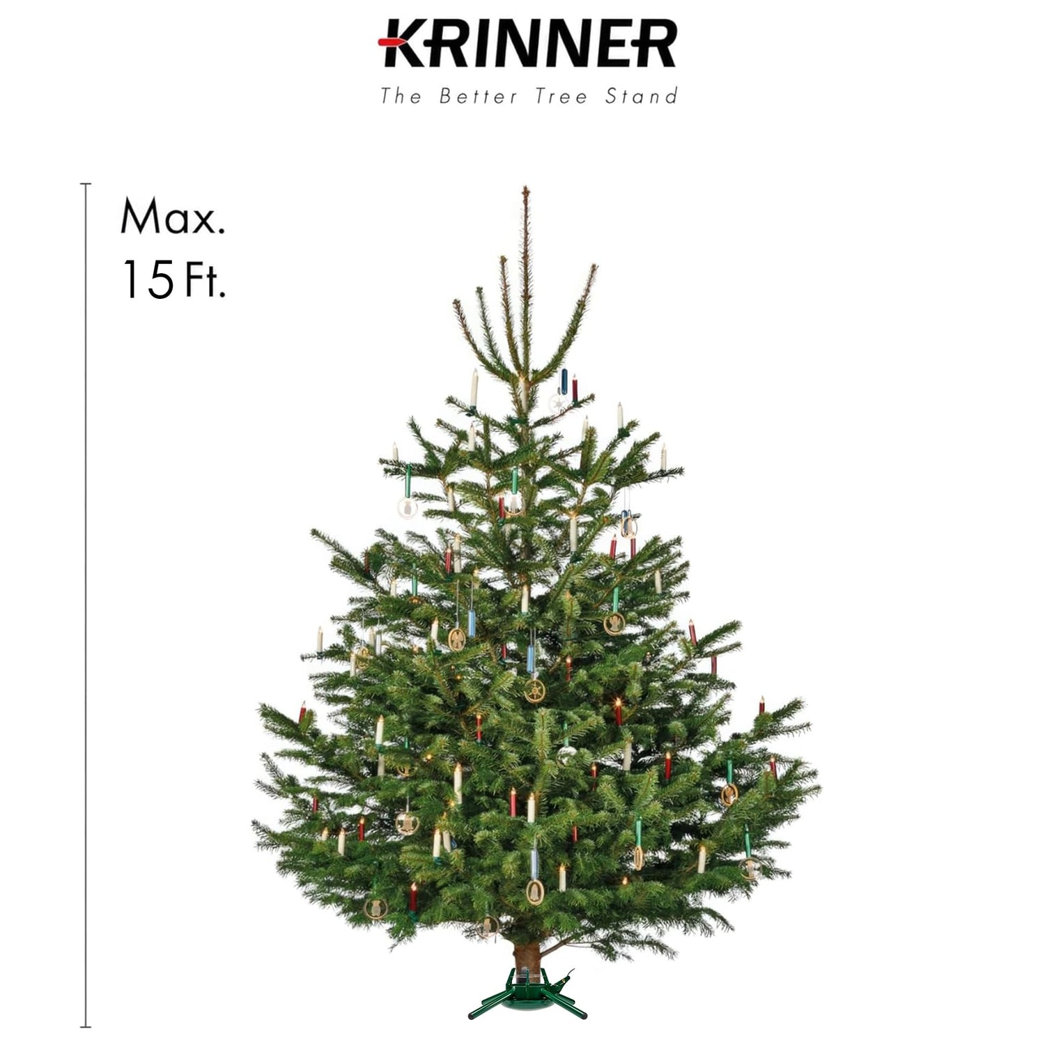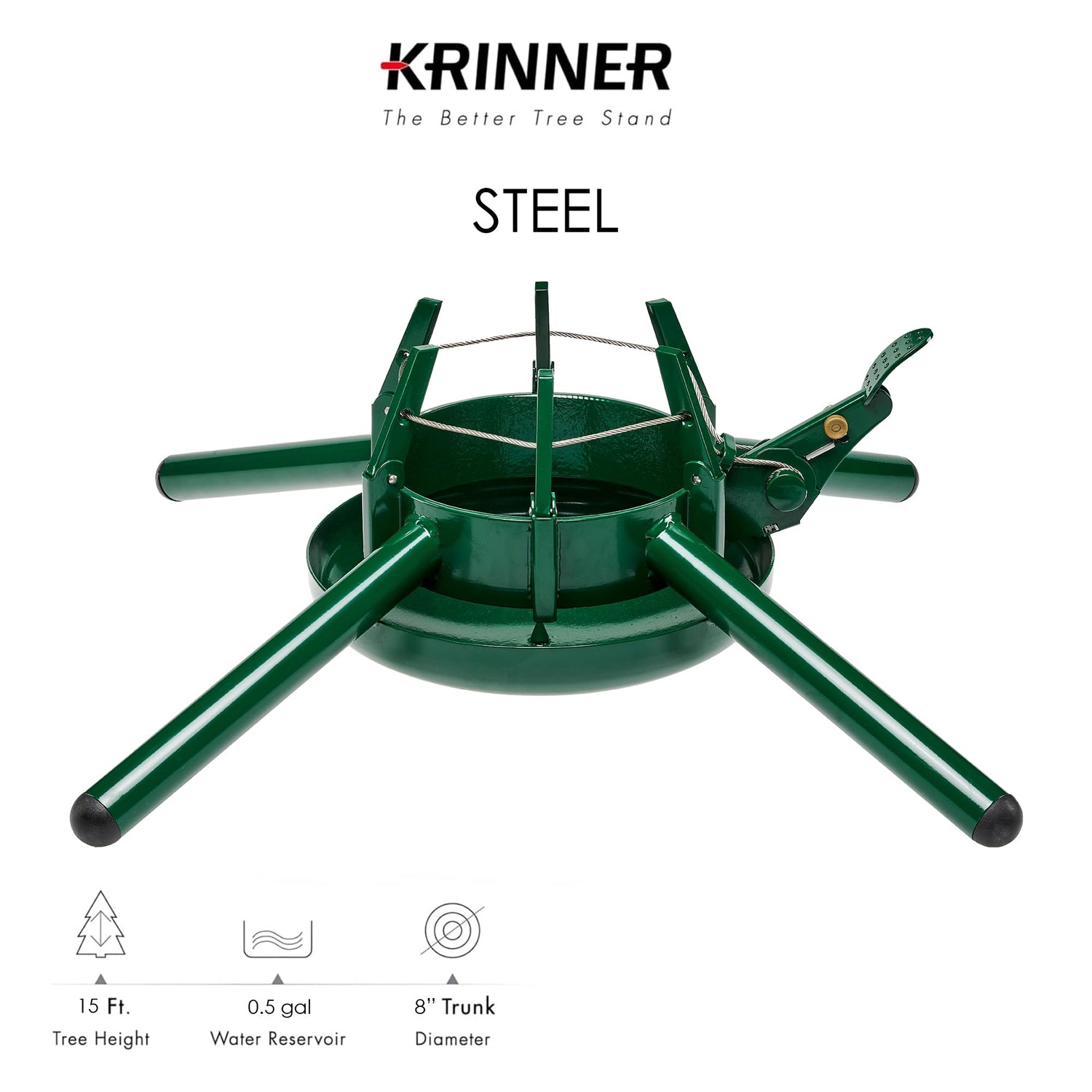 KRINNER Christmas Tree Genie Steel - Green Tree Stand - Original Single Cable Operation, Holds up to 15 ft Live Trees - Foot Pedal Setup & Water Reservoir - 4 Stabilizing Feet, German Made