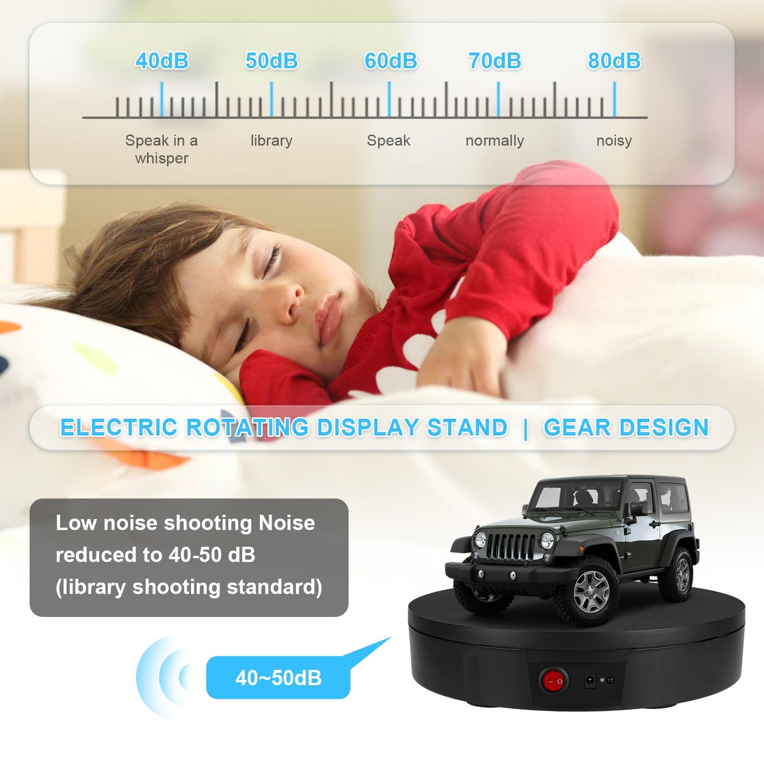 - 【Smooth, No Shaking】: The rotating stand has a smooth motor (≤50db) to avoid shake and noise during the video. Great tool for 360 degree images, short video, 3D models, exhibition and other product display