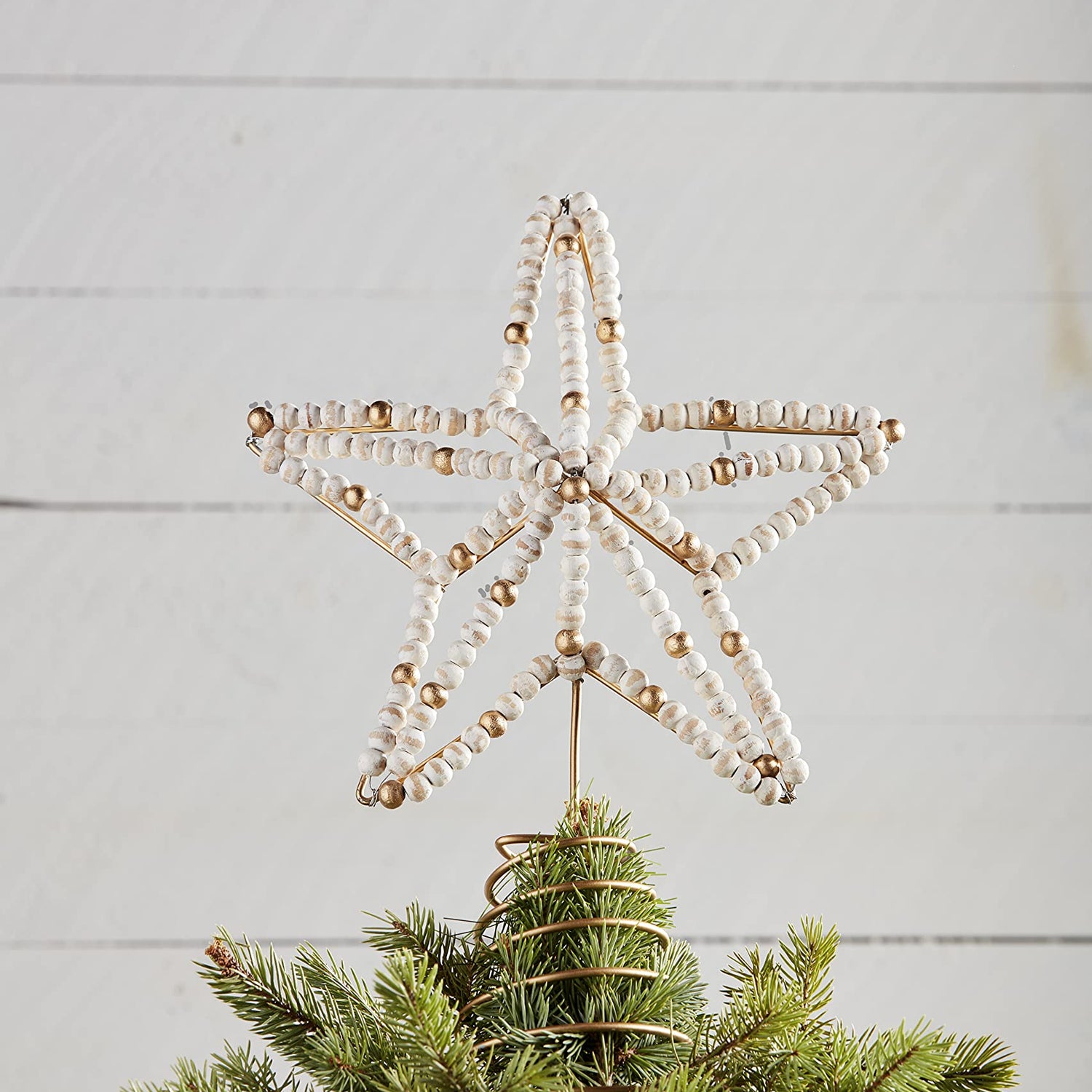 - Mango wood beaded wire star tree topper.