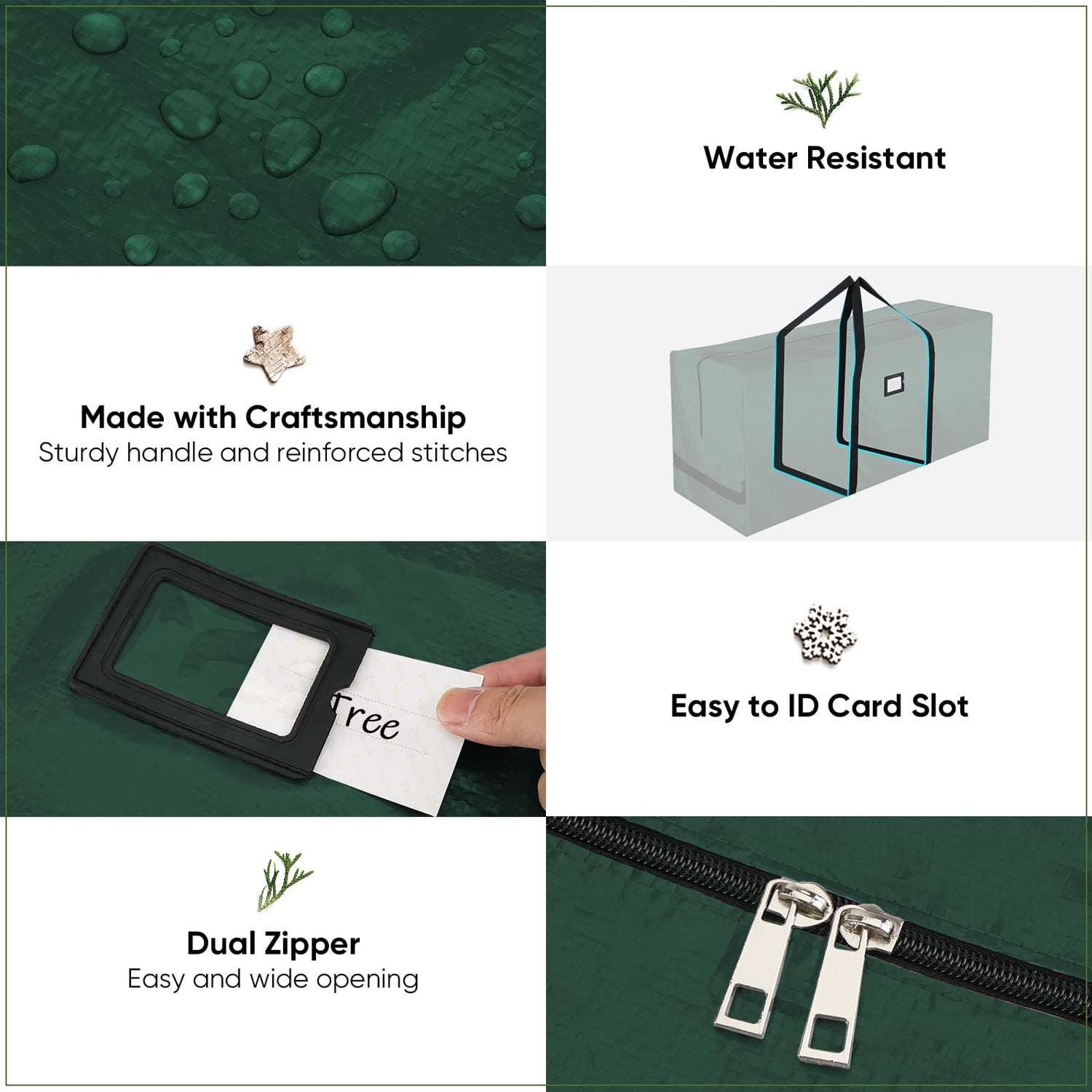 - 🌲[PERFECTLY SIZED & VERSATILE] Christmas tree storage built with craftsmanship. Generously sized for fluffy tree that can easily fit up to 7.5ft disassembled Artificial Christmas Tree. The Xmas tree bag is small enough to put away, big enough to hold and protect Christmas tree for the coming year after year.