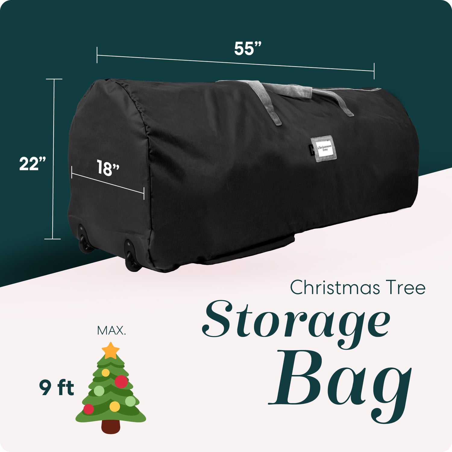 Handy Laundry Rolling Tree Storage Bag - For 9-Foot Artificial Christmas Holiday Tree. Zippered Bag, Carry Handles and Wheels for Easy Transport. Protects Against Dust, Insects, and Moisture. (BLACK)