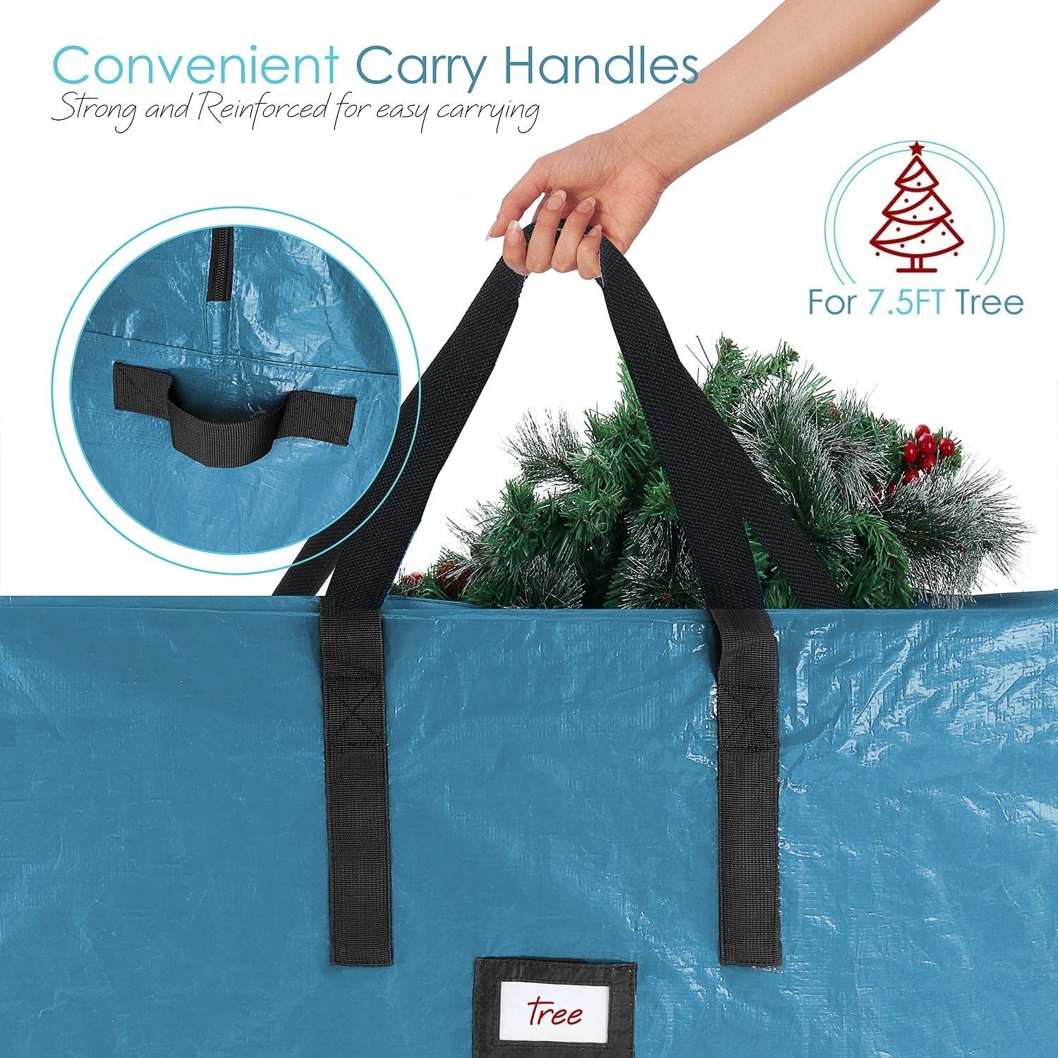- STRONG TREE STORAGE FABRIC - Our Christmas tree bag is heavy duty made from durable strong quality polyethylene plastic Fabric tear proof with reinforced side stitching reinforced handles. This strong material is waterproof and highly resistant to moisture to keep your Christmas tree safe.