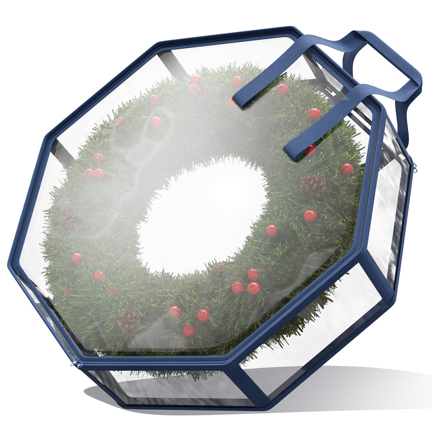 Hearth & Harbor Wreath Storage Container - Clear Christmas Wreath Storage Bag, Dual Zipper and Handles - 30" Premium Wreath Storage Organizer Box