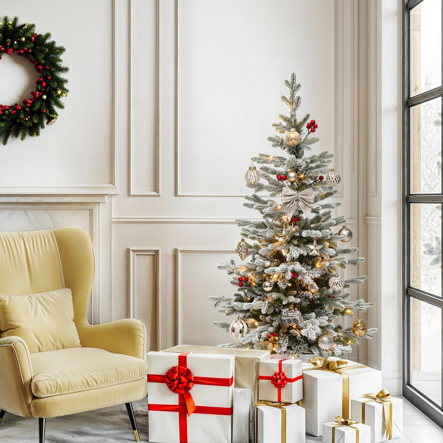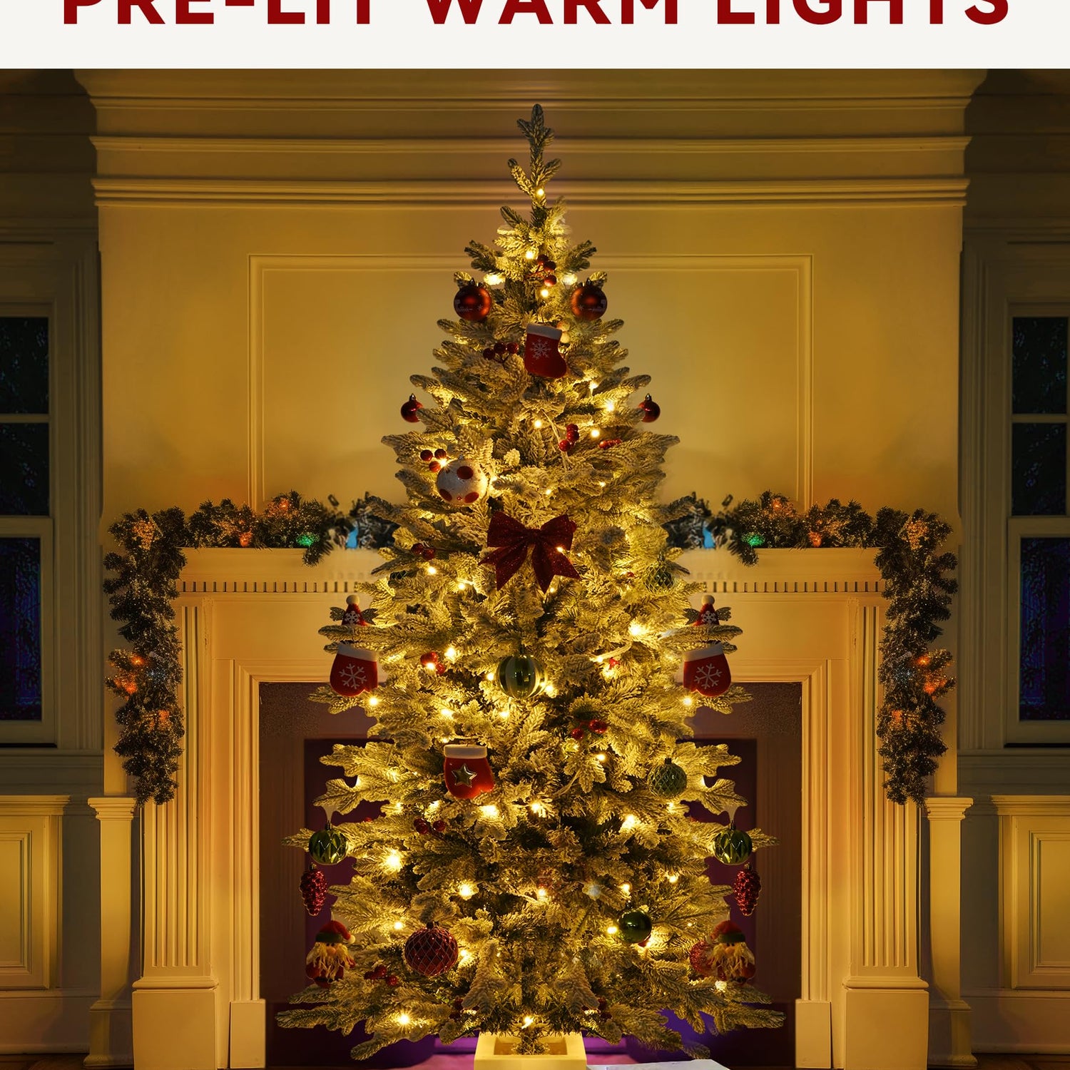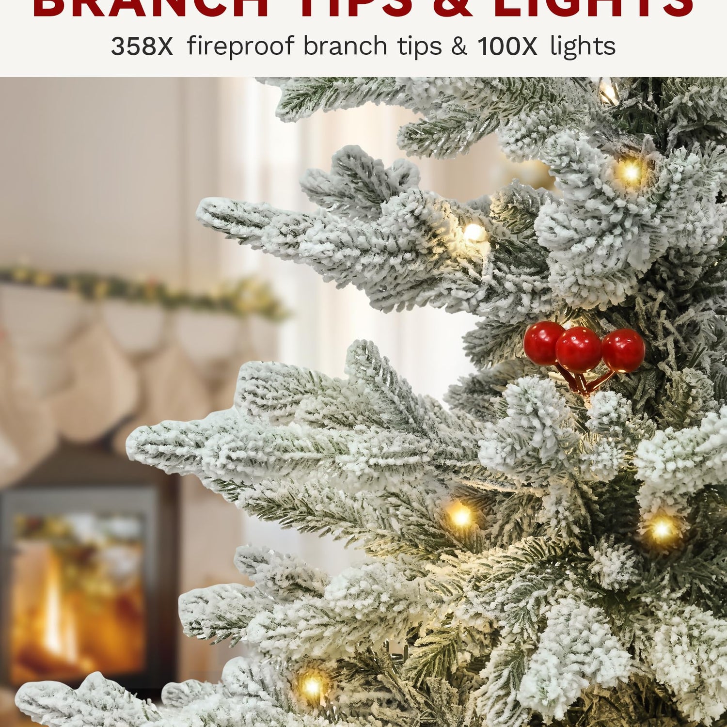 - Realistic Holiday Charm: With 358 lush green pine needle branches, this slim flocked tree offers a lifelike appearance; The snow-dusted flocking creates a winter wonderland feel, making it an ideal centerpiece for your festive and everyday decor