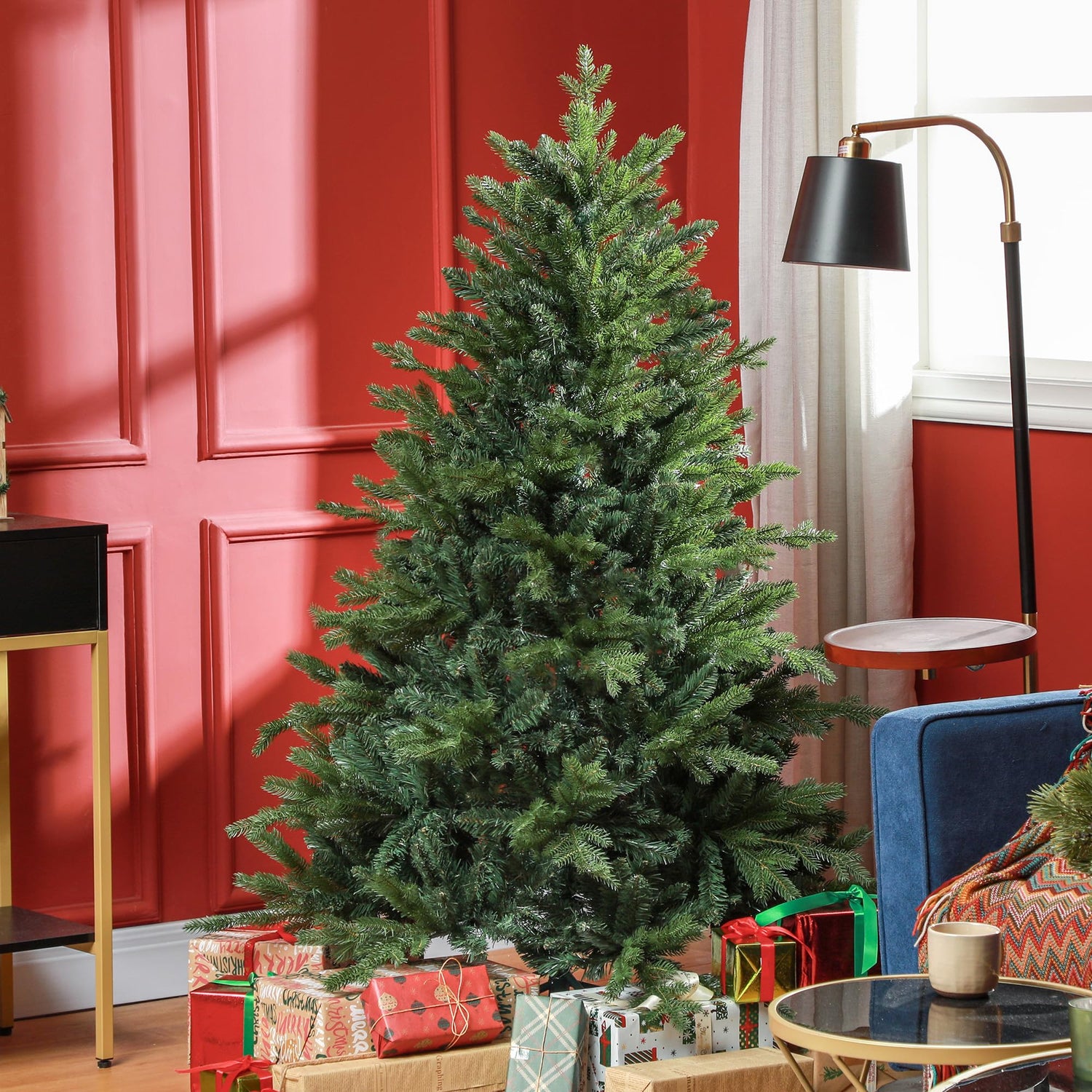 • Safe Holiday Decor: Have safety and comfort indoors near the fireplace. Enjoy your holidays with peace of mind, knowing that this fake Christmas tree's branches are flame retardant.