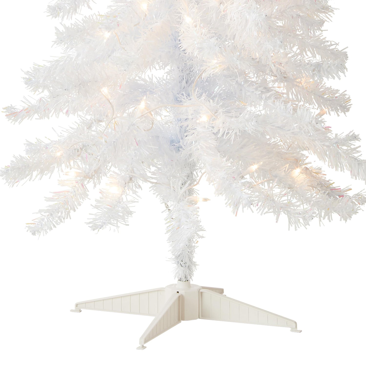 - This Tinsel Pre-Lit Artificial White Christmas Tree is 4 feet tall with a 24 inch base diameter. Featuring hundreds of individually crafted branch tips to create full bodied branches, this tree is designed to look and feel lifelike