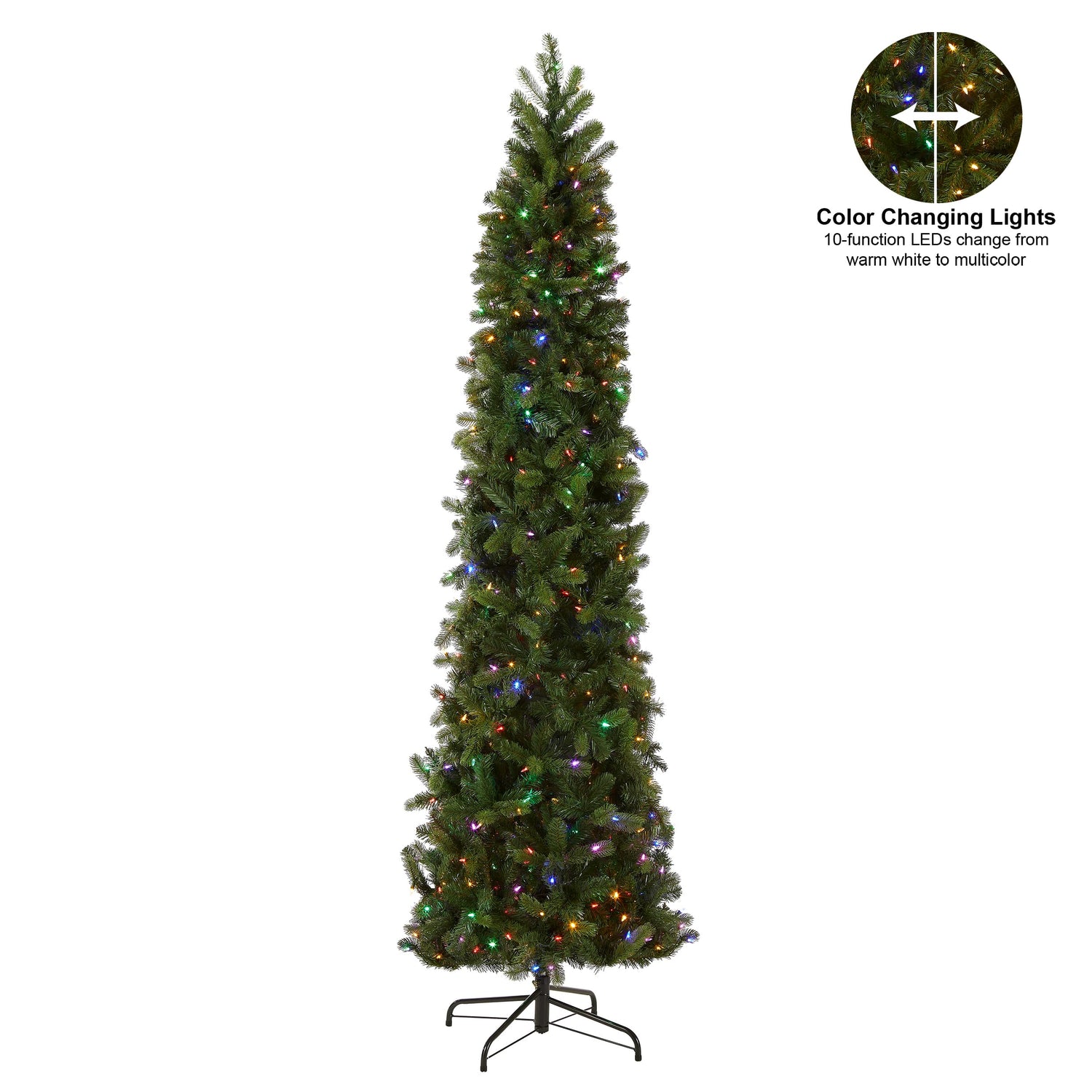 Details: Transform your home into a winter wonderland with National Tree Company's Pre-Lit ‘Feel Real’ Artificial Christmas Tree. This Downswept Douglas Fir tree is 9 feet tall and has a 35 inch diameter base, creating a slimmer profile and making it a better option for those with limited space. Friends and family alike will marvel at how the tree closely mimics those outside. Molded from real tree branches for an authentic living tree appearance, this tree features our trademarked ‘Feel Real’ technology. Hundreds of crush-resistant polyethylene tips form full bodied branches to create a tree with remarkable realism. The tree is designed with a hinged branch system that allows the branches to swing down for a quick and simple set-up and fold back in for easy storage. Set aside 45-60 minutes after assembly to properly shape the tree by peeling back the branches and pulling the tips apart to give the branches a more full-bodied look. This fantastically festive tree is strung with 900 Dual Color LED lights prior to packaging and includes a sturdy, metal base for a more convenient setup. The Dual Color LED bulbs can alternate between white and multicolor lights and includes a switch to control ten different light functions, allowing the bulbs to twinkle, flash or fade on either color setting. The lights operate individually, so if the bulb lens has not been cracked or broken, the light set will continue to illuminate except for any individual bulbs that are not working. This tree also includes PowerConnect, an additional feature where the wires run through the middle pole of the tree, eliminating the need for extension cords and plugs in the branches. Before dressing the tree in twinkling lights and glistening ornaments, consider placing it in a living room or dining area where it can be viewed from multiple angles and does not block any entryways. Constructed with sturdy, high quality materials and hypo-allergenic, fire-resistant needles, this tree is built to bring holiday cheer for years to come. At National Tree Company, we strive to create high quality Christmas decorations to help you transform your home so you can keep making every holiday moment magical.