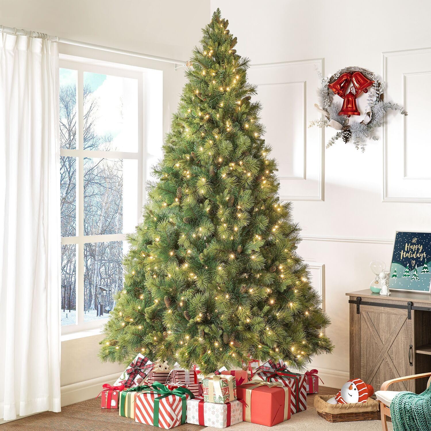 - CLASSIC CHRISTMAS TREE DESIGN : Our Vail Traditional Artificial Christmas Tree is a voluminous and full tree that will bring so much life to your home these holidays. Its lightly white frosted tips, incandescent soft lighting, and realistic pinecones give it that touch of warmth missing this winter. Arbol de Navidad con luces.