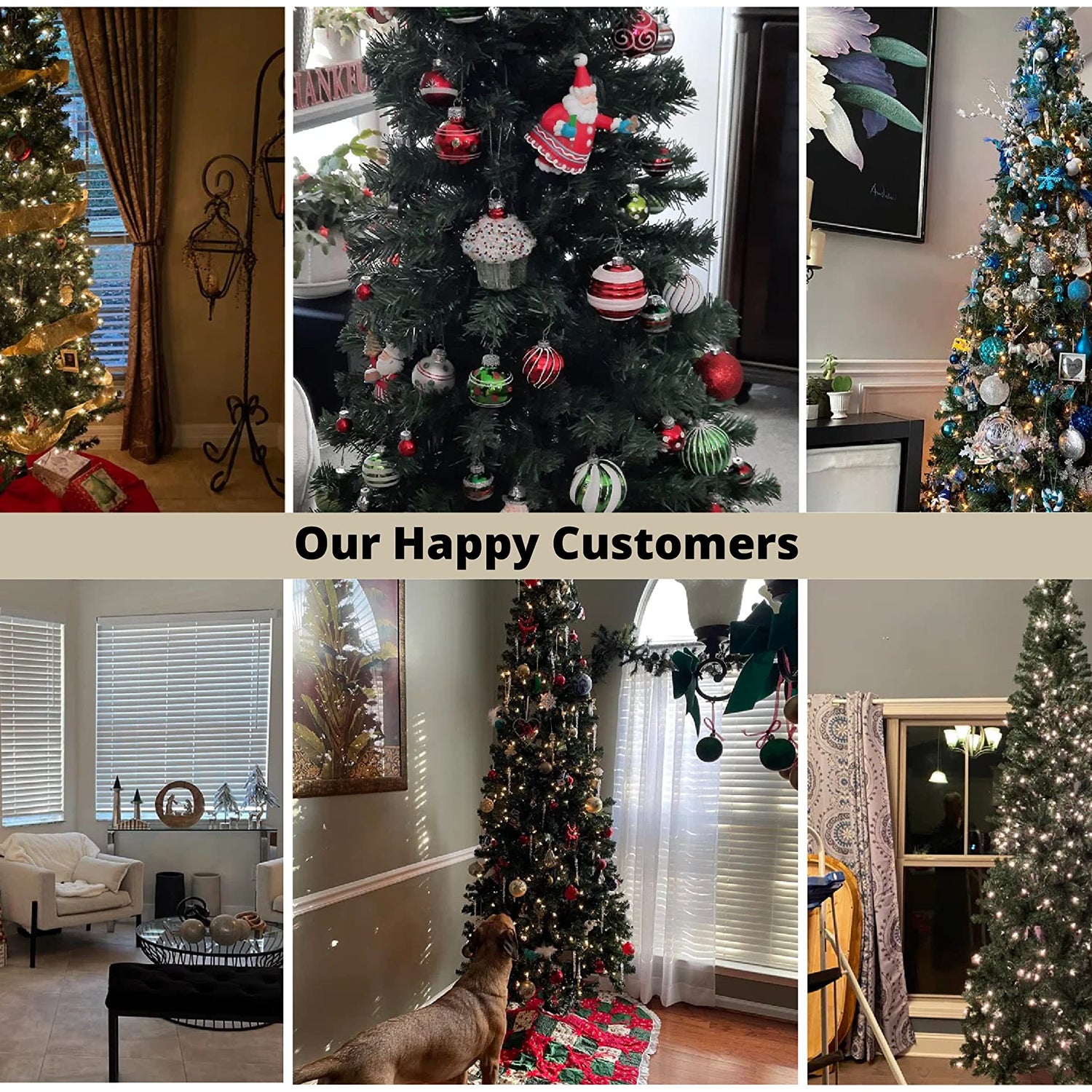 - EASY TO ASSEMBLE : Our Pencil Christmas Tree features hinged branches, making assembly and disassembly very convenient. The Branches fall easily in place for fluffing and are easy to fold back up for storage. Our Proprietary Packaging ensures the safe delivery of the christmas tree to your home. The tall skinny christmas tree comes with 90 days Manufacturer's warranty and in case of any issues, you can contact our customer support for easy refunds/replacements.