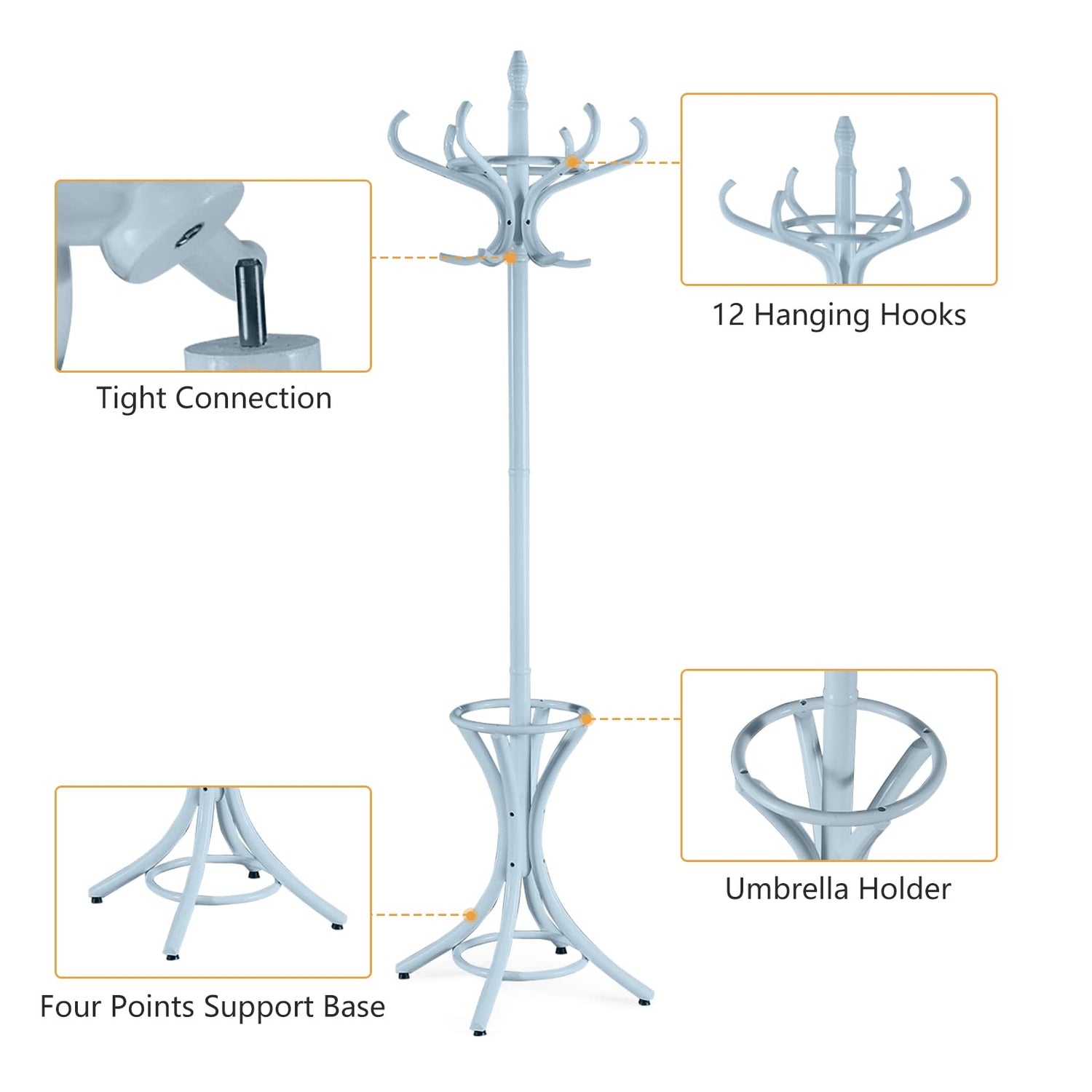 - Multi-purpose Rack with Umbrella Stand: Featuring with 2 layer structure, 6 large and 6 small hooks, this coat rack stand provides sufficient storage space to organize your clothes, bags, hats, scarves, etc. Besides, there is an umbrella stand in the lower part, which offers additional storage for holding umbrellas, walking sticks or canes.