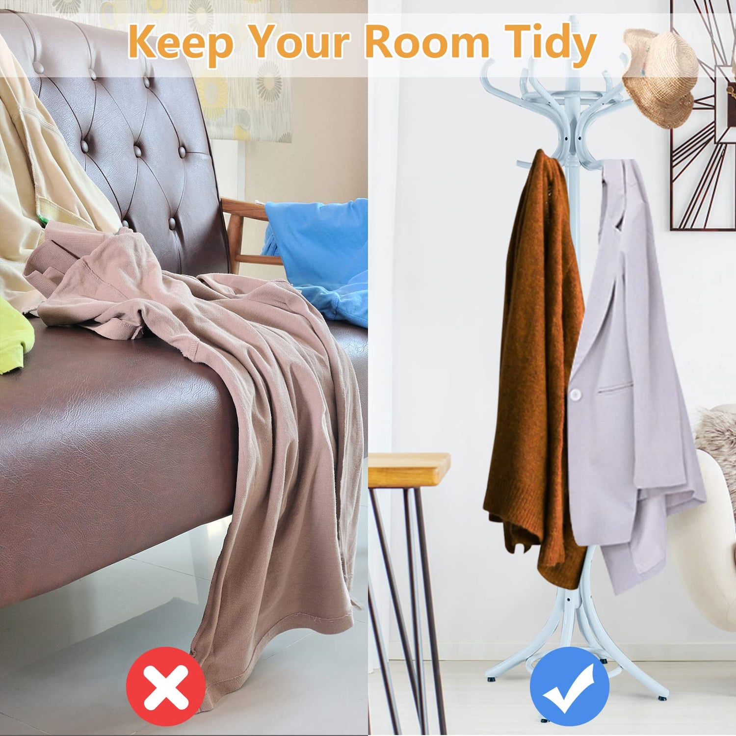 - Stylish Coat Rack: This coat tree features an elegant appearance which looks great for decorating your room. Painted with eco-friendly stoving varnish finish, the surface of the coat rack is smooth and bright. Seamless stitching and stylish design make it suitable for any room.