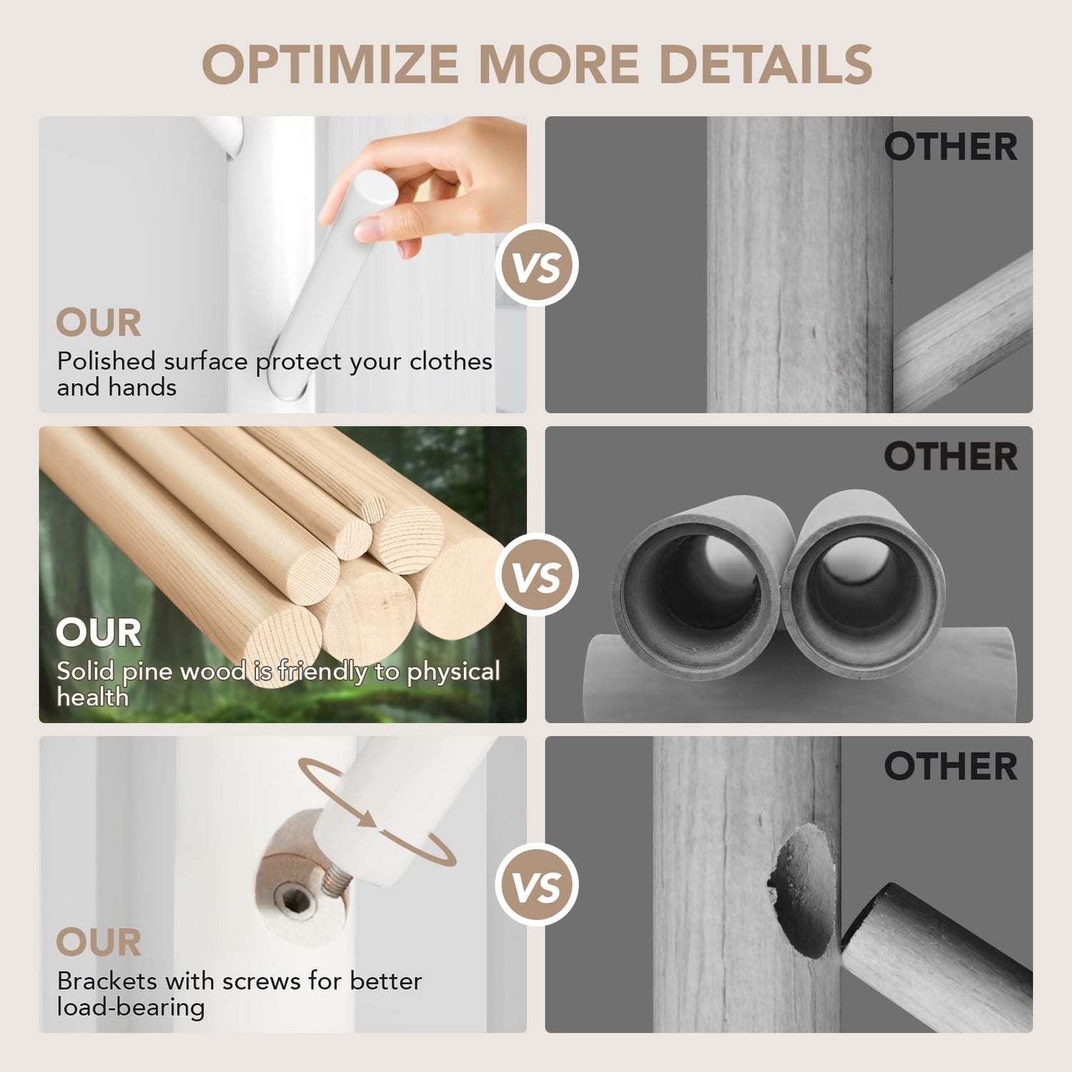 - Unique Craftsmanship: Hupmad freestanding coat rack is made of New Zealand pine wood, which is strong. The columns and hooks have a fine polished surface with a smooth and rounded feel. Protect your clothes from being scratched. The solid wood coat rack retains the natural wood grain and provides a simple and elegant versatile style