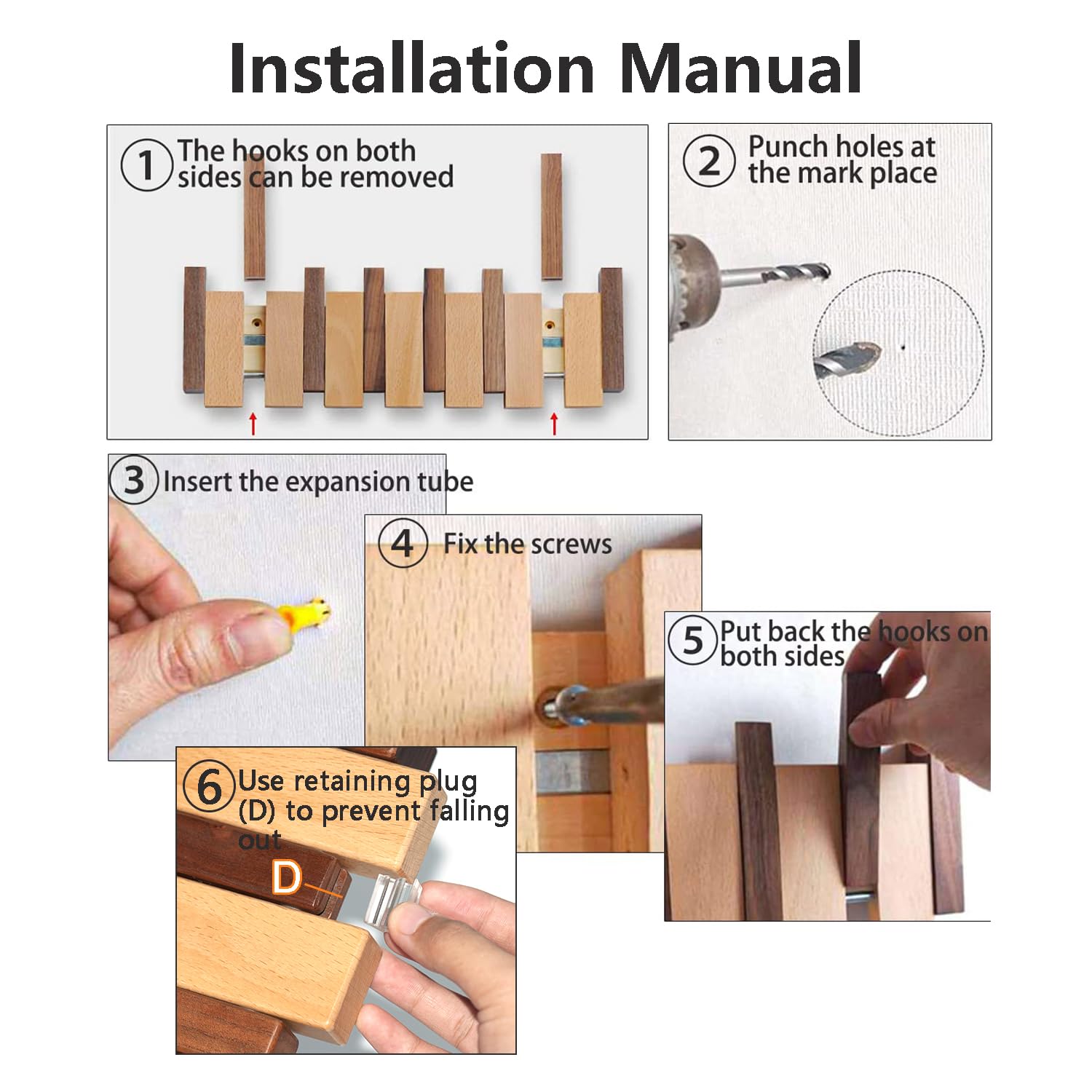 - 【Unique Wood Coat Rack Wall Mount】The coat hanger wall mount is handmade from walnut and beech wood with a smooth hand-polished finish using an eco-friendly wood wax oil coating process.
