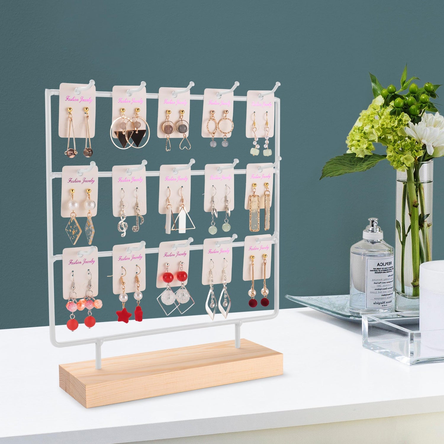 - 【Large Display Space】The earring stand has 3 tiers and 15 hooks,each hook can hold multiple pairs of earrings. It's the best choice for boutique or flea market to display the earrings