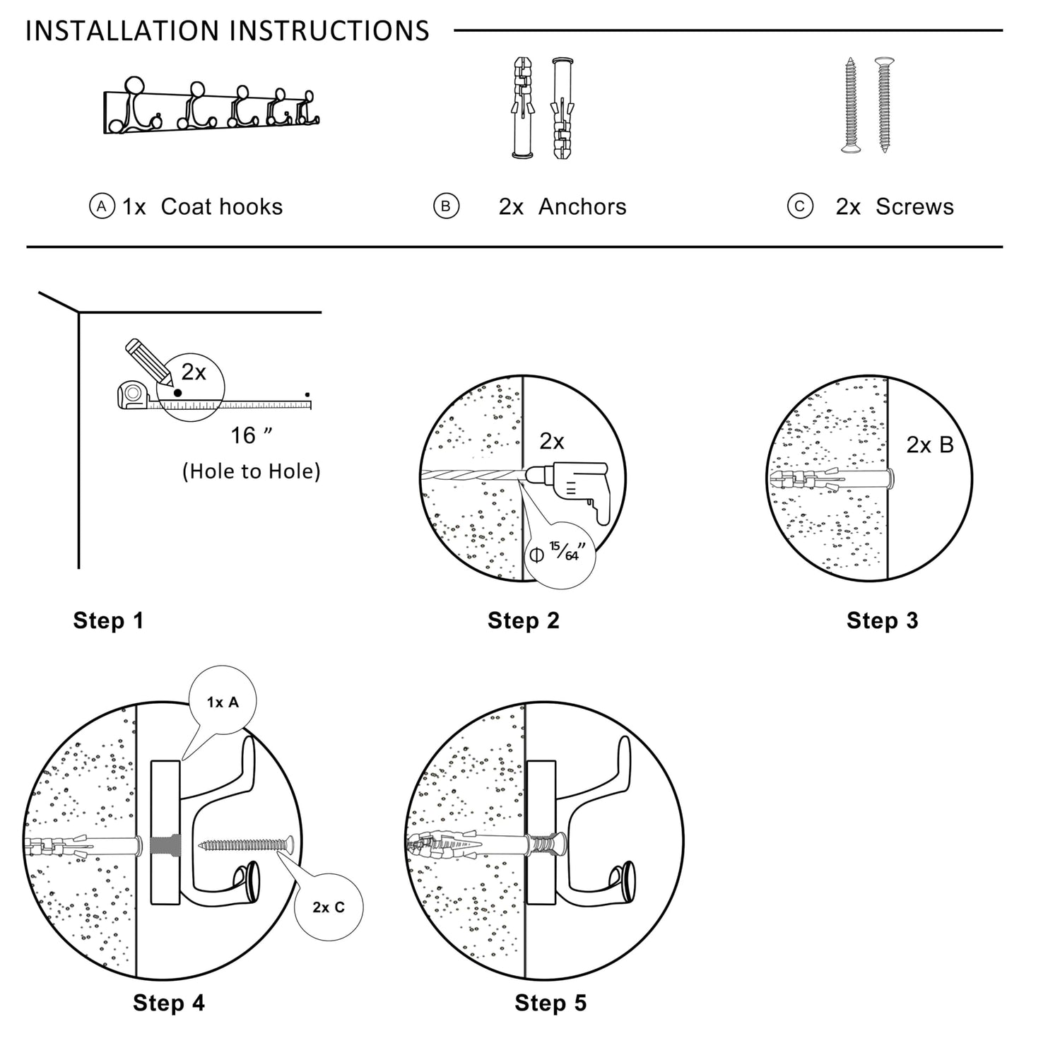 - 【Sturdiness & Large spacing】Solid wall mount coat rack with 5 triple hooks, hang 5 or 10 jackets per rack. Plenty of space to support clothes, bags, and pet supplies, making it perfect for family.