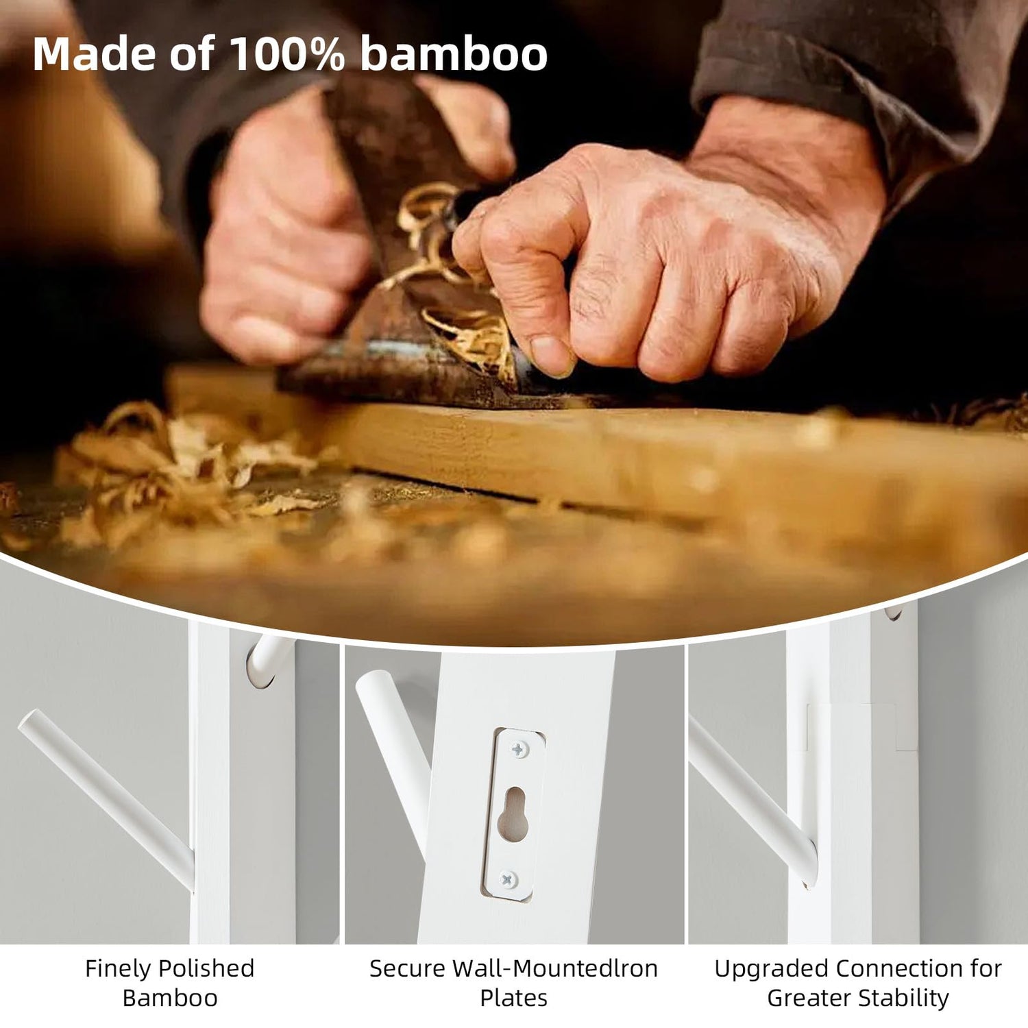 TIOPGHAD 2 Pack Coat Rack Vertical Wall Mount, Bamboo Coats Hooks Clothes Holder Hanger for Wall Coat Hat Jacket Clothing Bathroom Robes Mudroom Entryway(White)