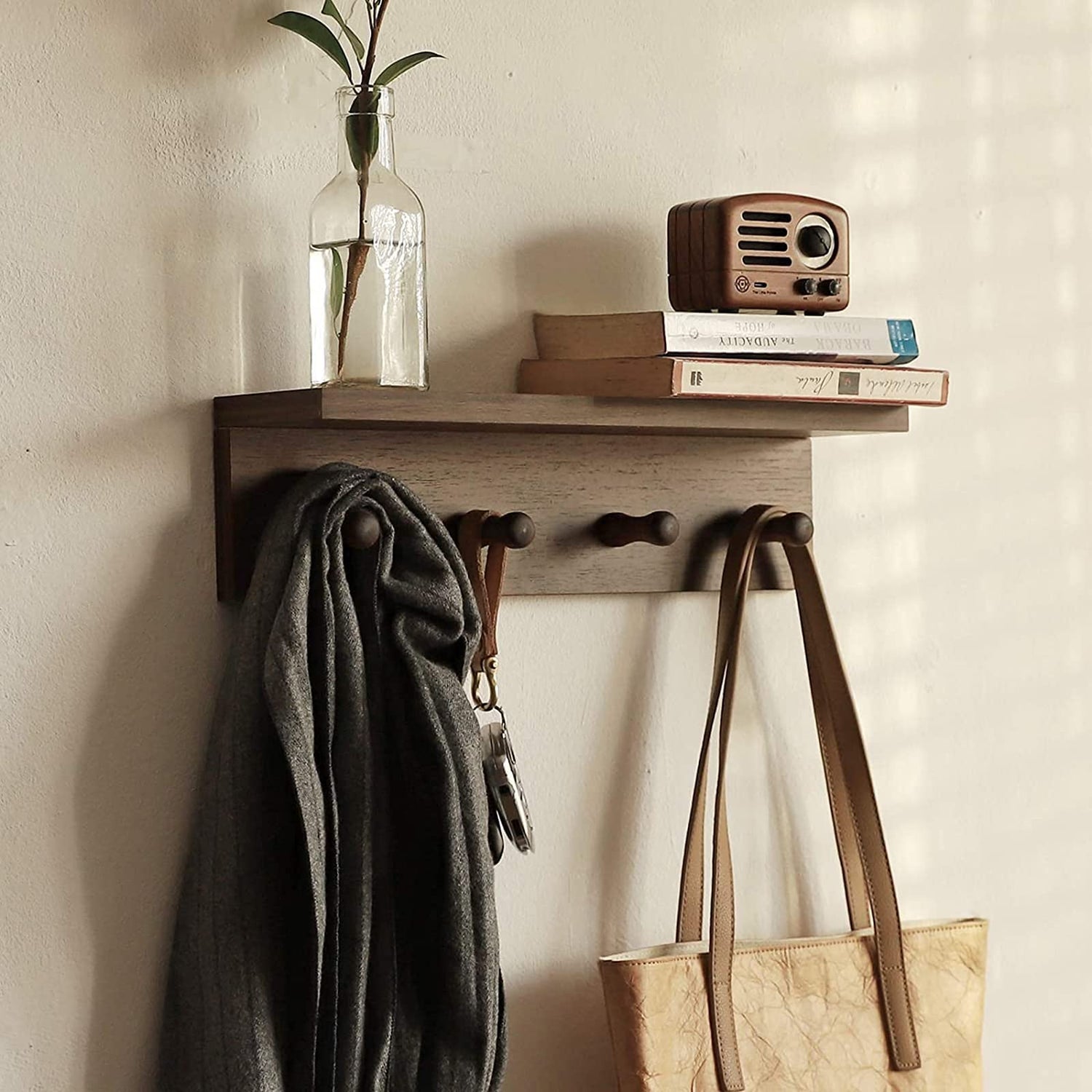XAOMLP Entrance Coat Rack ,Coat Hooks, Wall-Mounted Wooden Hook Rack, Wall-Mounted Shelves are Very Suitable 1pcs(Walnut Color)