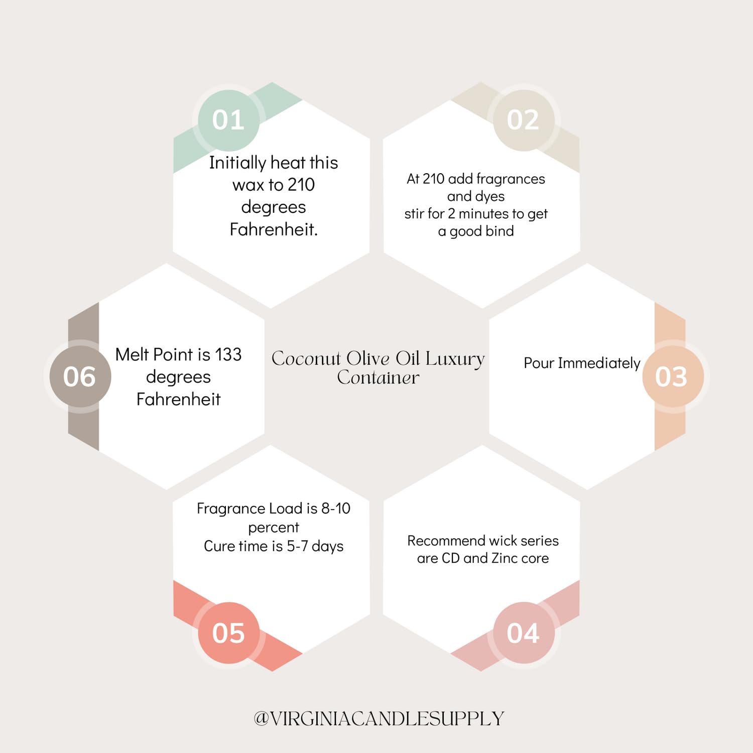 - A unique blend of Coconut and Olive Oil wax developed to take your candle making to the next level.