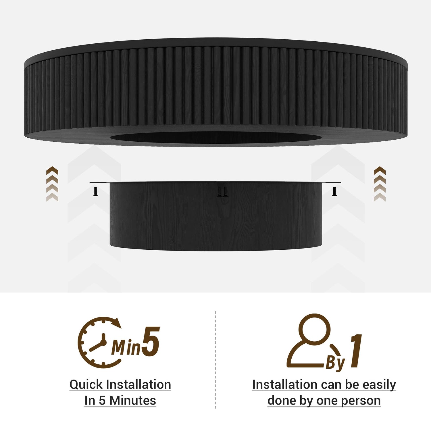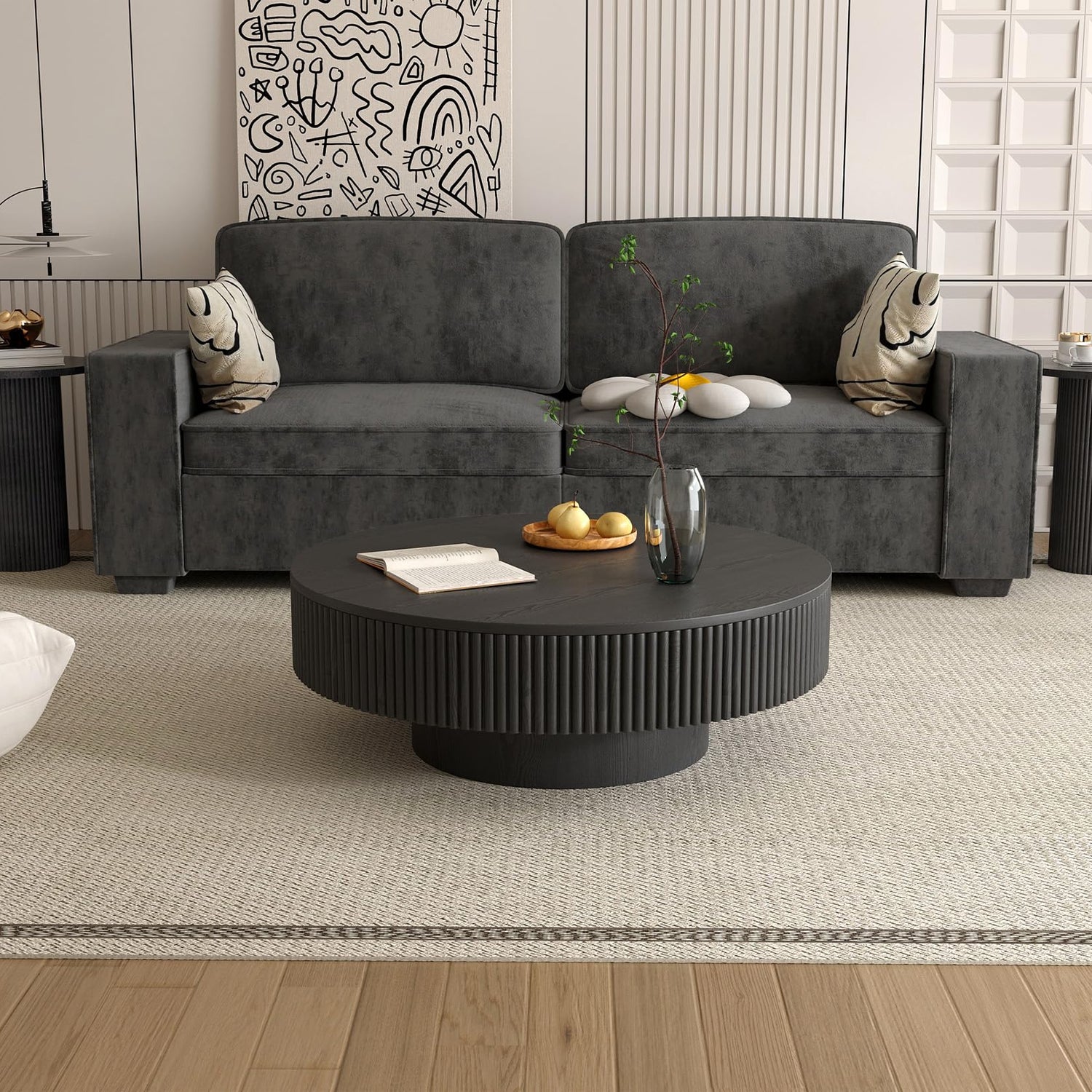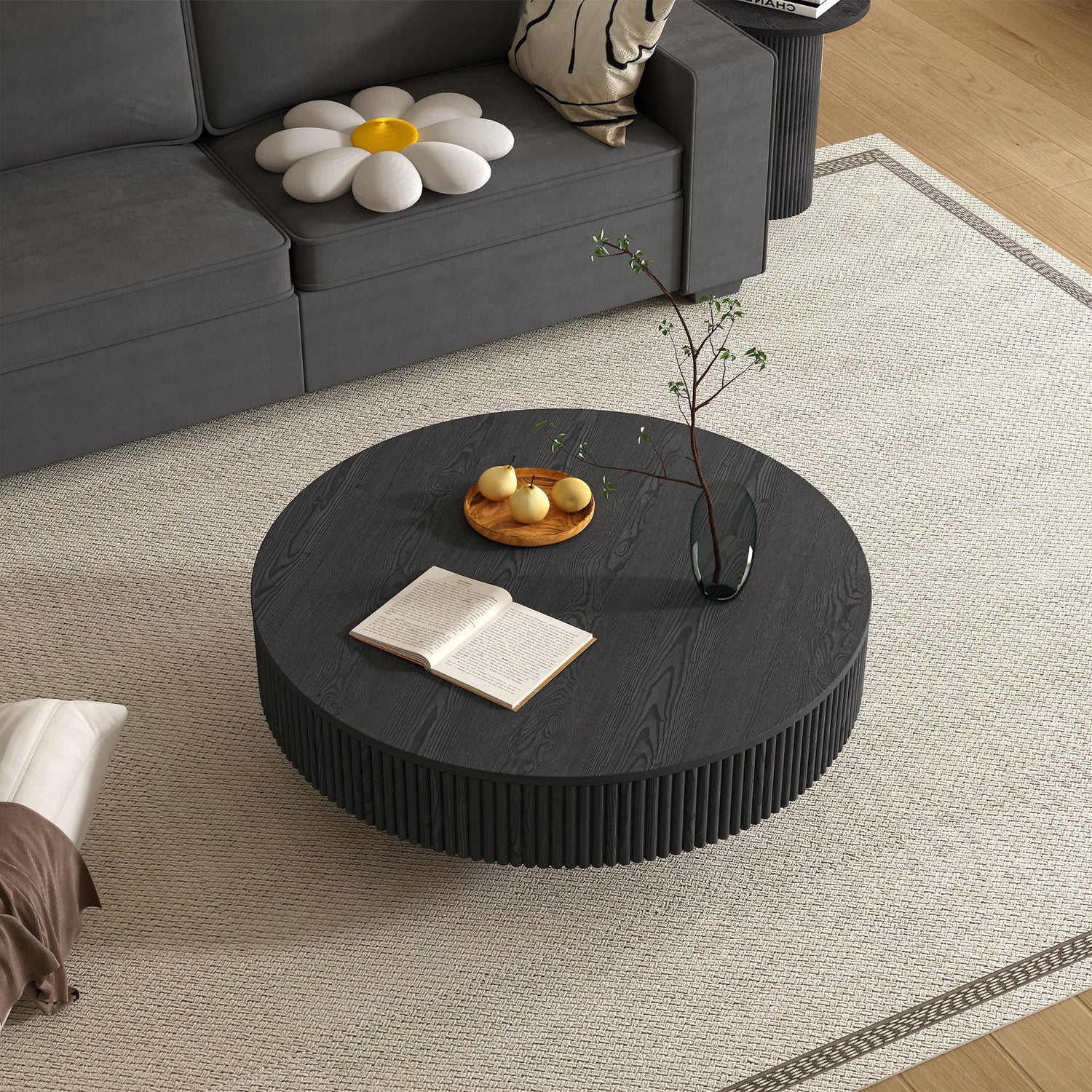 Apicizon 31.5'' Black Round Fluted Coffee Table for Living Room, Mordern Wood Coffee Table, Drum Coffee Table for Small Space, Center Accent Table, Mid-Century End Table for Apartment