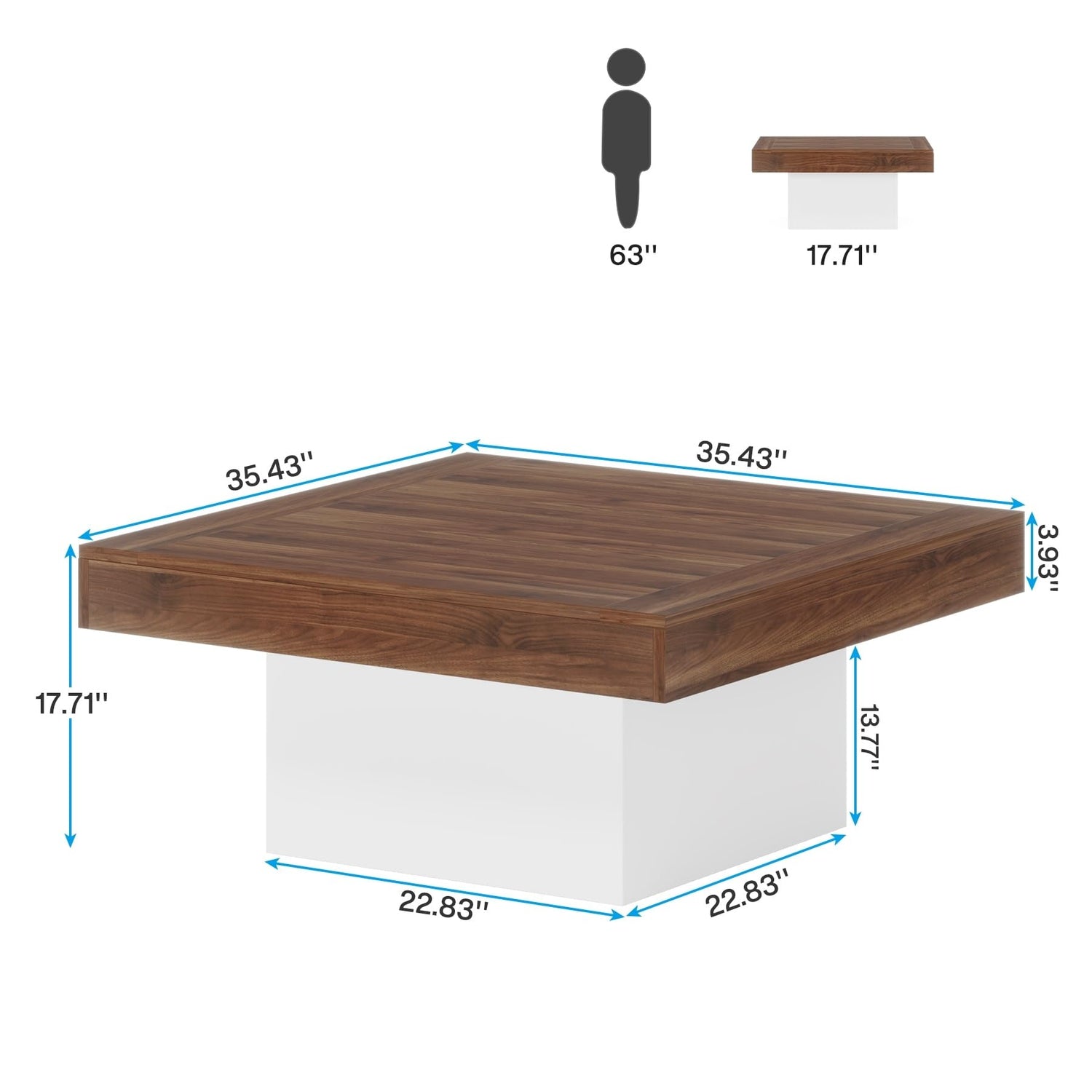 Bed Bath & Beyond Farmhouse Square LED Coffee Table Engineered Wood Coffee Table for Living Room Tan