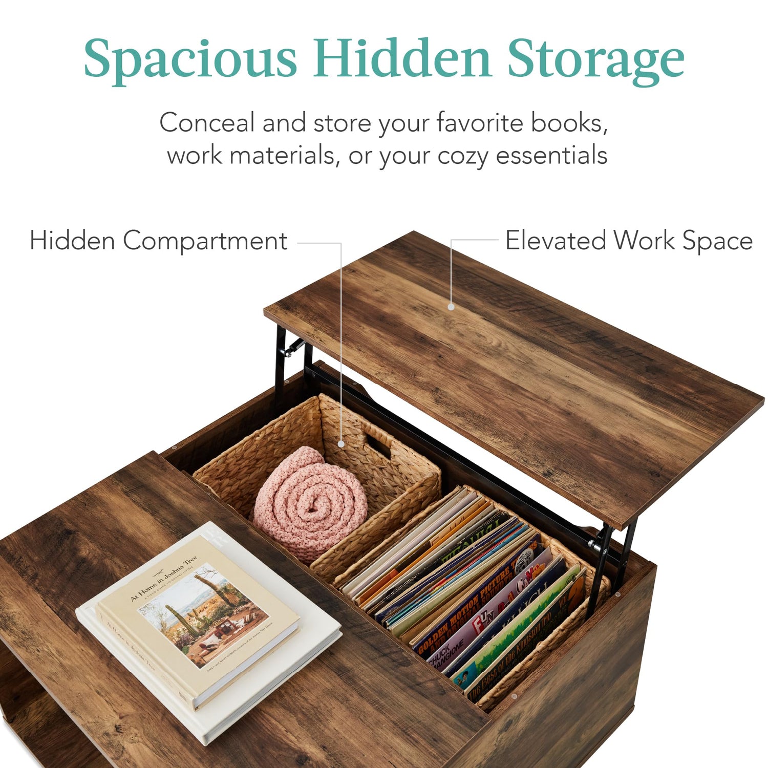 Best Choice Products Square Lift Top Coffee Table, Wooden Rustic Modern Multifunctional Accent Table for Living Room w/Hidden Storage, Cubby, Non-Scratch Pads - Brown