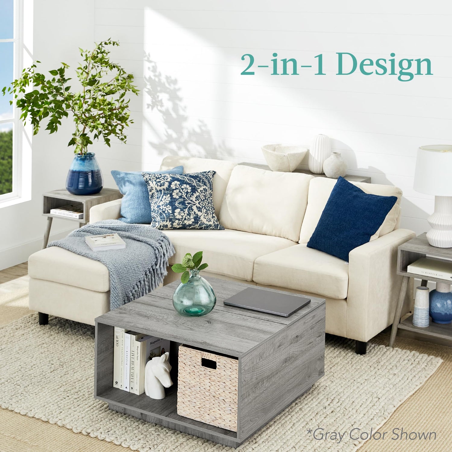 - LIFT-TOP DESIGN: A modern twist on convenient lounging, this table features a lift top to provide a floating work or dining surface, complete with soft-close hinges for a smooth transition