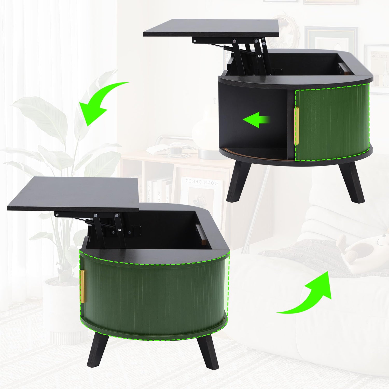 Details: Elevate your living space with this 47.24" oval lift-top coffee table, featuring a versatile hydraulic lift mechanism that effortlessly transforms the tabletop into a practical workspace or dining surface, supporting up to 12 lbs. Designed for small apartments, home offices, or shared spaces, this coffee table offers ample storage solutions with a hidden compartment (18.5” D x 30” W x 7.9” H) and two semi-circular open and hidden storage areas for easy access to essentials. The stylish tambour sliding door adds mid-century modern sophistication while providing seamless access to stored items. Compact yet spacious, it measures 19.69” D x 47.24” W x 16.54” H, supports up to 100 lbs, and fits perfectly into any room without overwhelming the space. Crafted from high-quality MDF wood, this durable table resists daily wear and is easy to clean. Simple step-by-step assembly instructions make it hassle-free to set up, with dedicated support available for assistance. Perfect for adding style, functionality, and organization to your home.