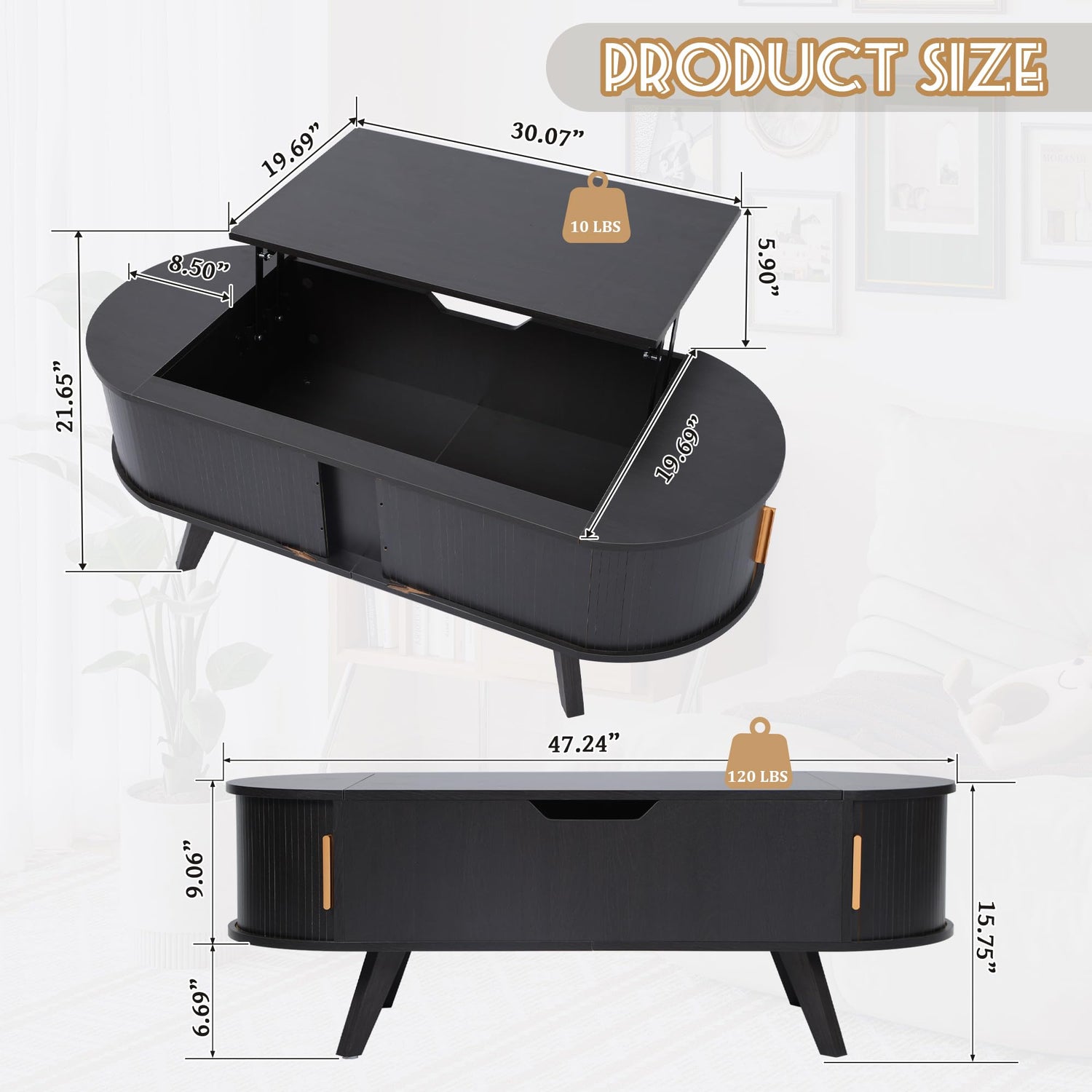 Bifins Lift Top Coffee Table with Storage,47.2" Oval Coffee Table with Sliding Tambour Door,Mid Century Modern Coffee Table with Lifting top for Living Room (Black, Tambour Door)