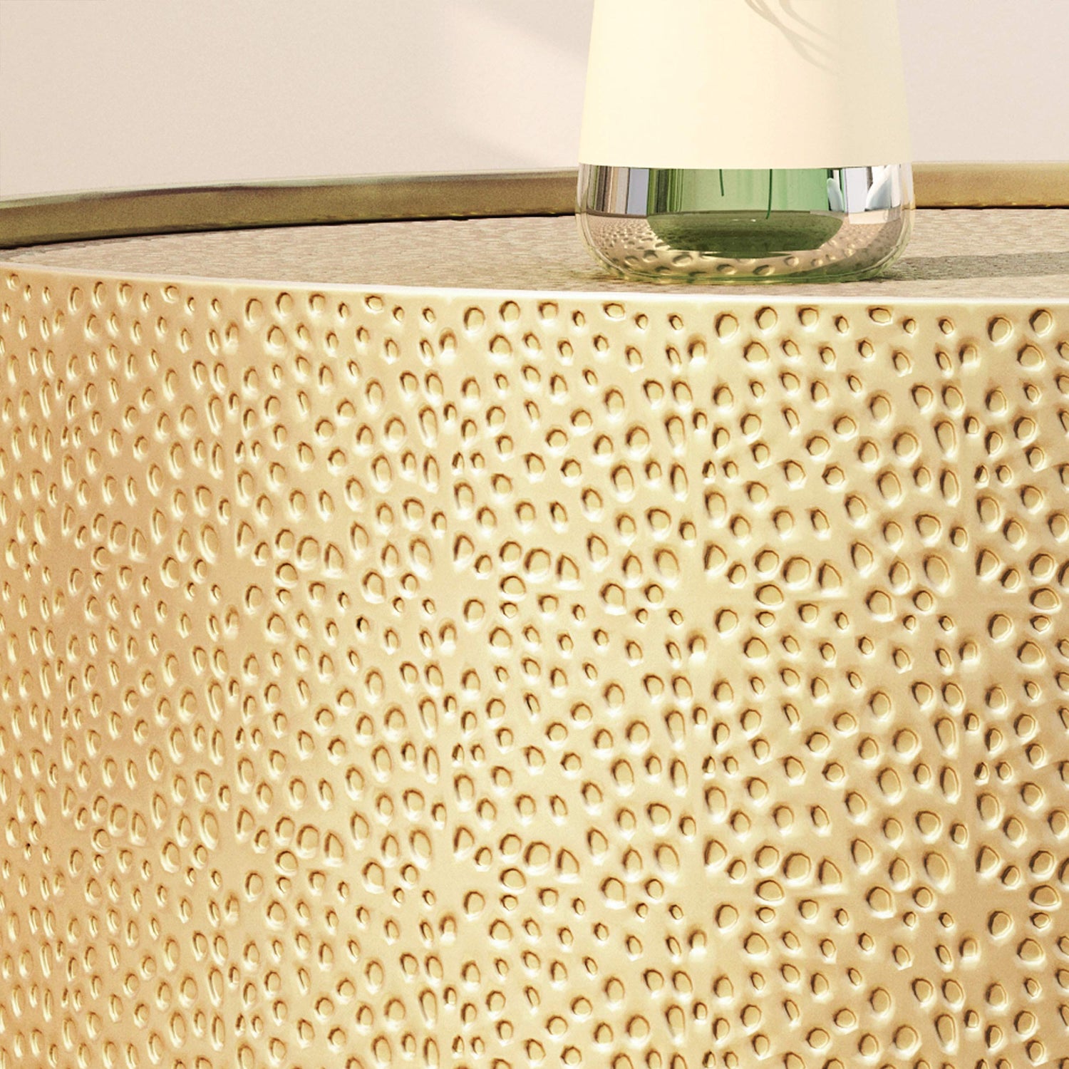 - HAMMERED METAL: This coffee table features a hammered surface to create a gorgeous textured look. This finish allows this piece aesthetic versatility, blending seamlessly with a range of decor styles.