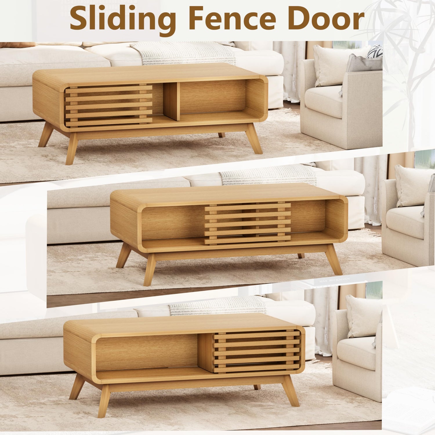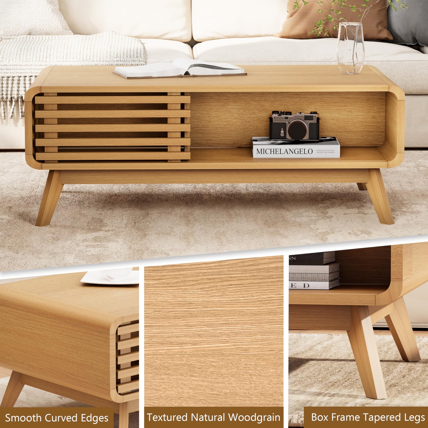 Coffee Table with Storage, Mid Century Modern Wooden Living Room Center Table, Furniture Farmhouse Wooden Coffee Table for Living Room, Oak