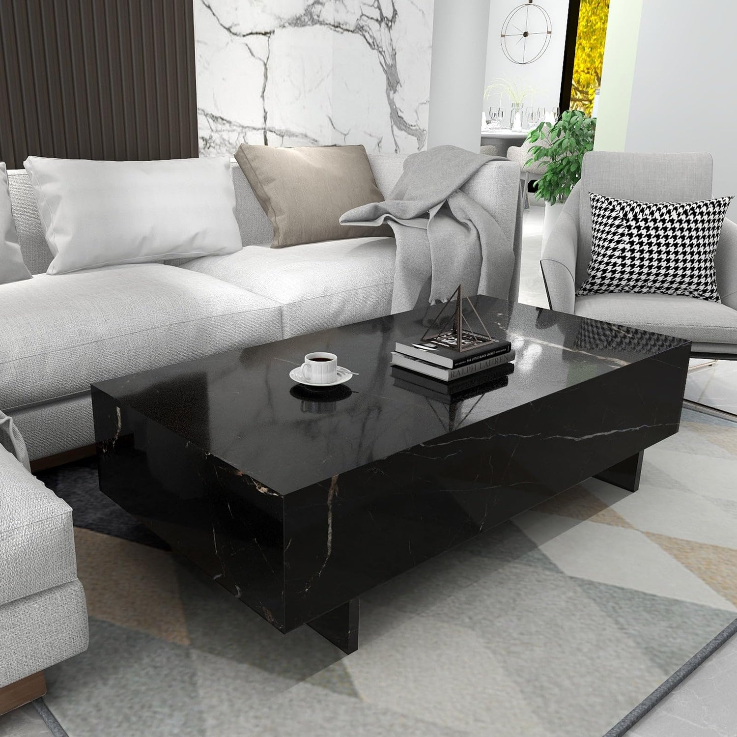 COSVALVE Marble Rectangle Coffee Tables for Living Room,Black Modern Side Table,Contemporary High Gloss Elegant Center Table for Waiting Area,41.3" Lx19.7 Wx13.8 H,Black