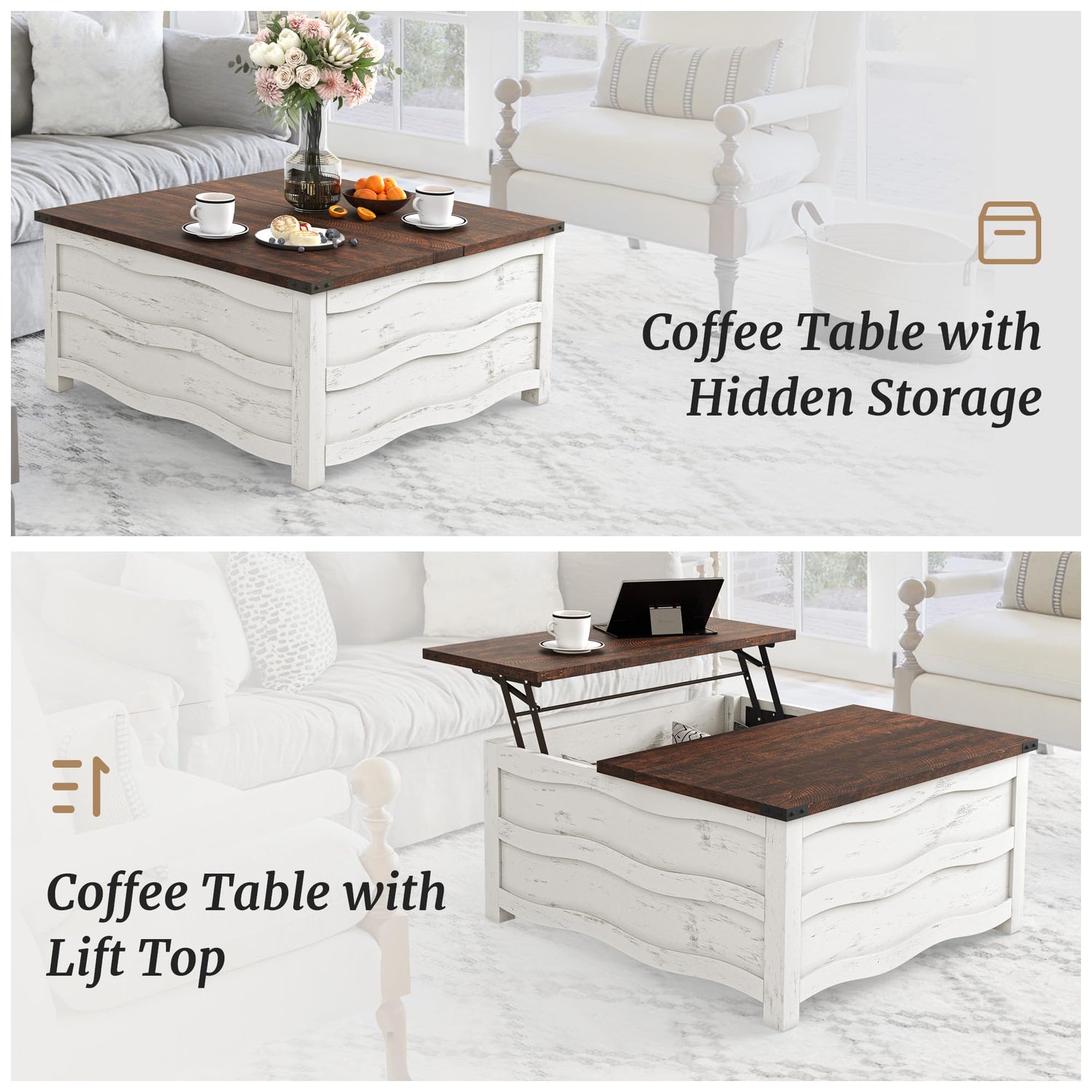 Cozyman 35.6" Lift Top Coffee Table with Storage, Farmhouse Coffee Table for Living Room with Large Hidden Storage Compartment, Wood Square Center Coffee Tables with Flexible Hinged Lift Top, White