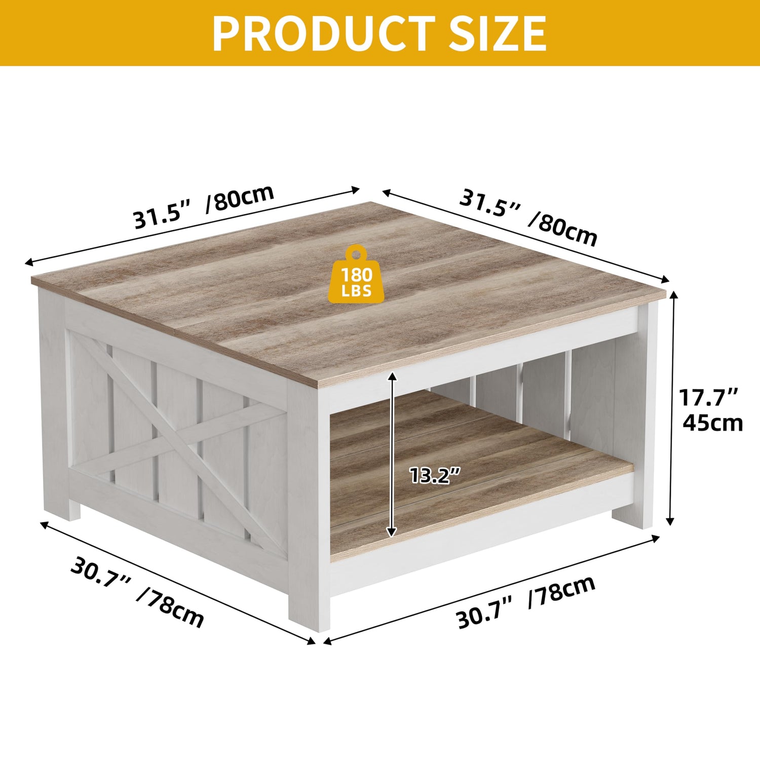 • Unique Side Fence Design: Square coffee table features a special side railing design that adds a touch of character to any room. The rails provide both aesthetic appeal and practical use by keeping items from falling off the table