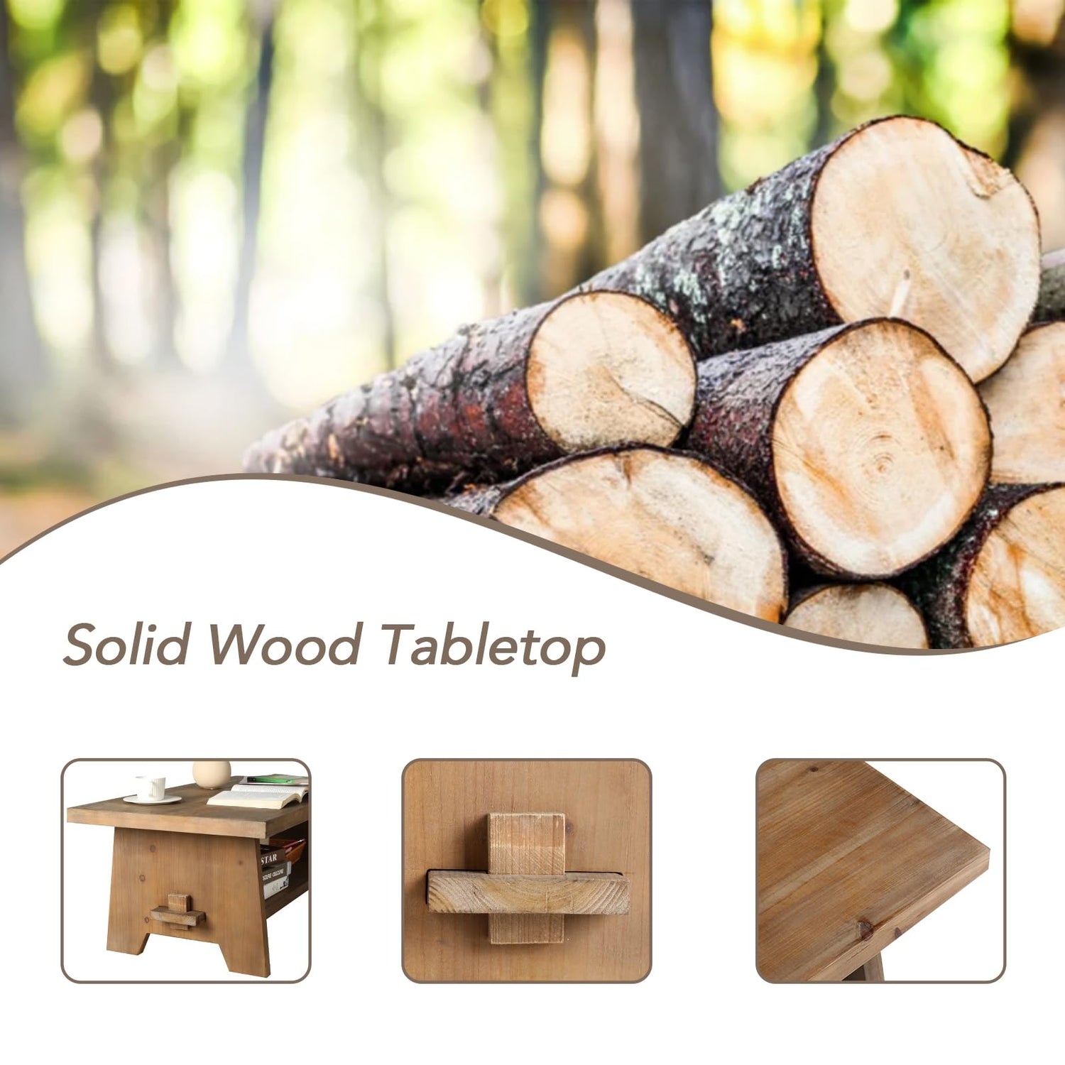 Details: HOKYHOKY Farmhouse wood coffee table - 43.4” Wooden coffee tables for living room, Solid firwood Tabletop rectangle coffee table, center table for living room, Natural Wood Color