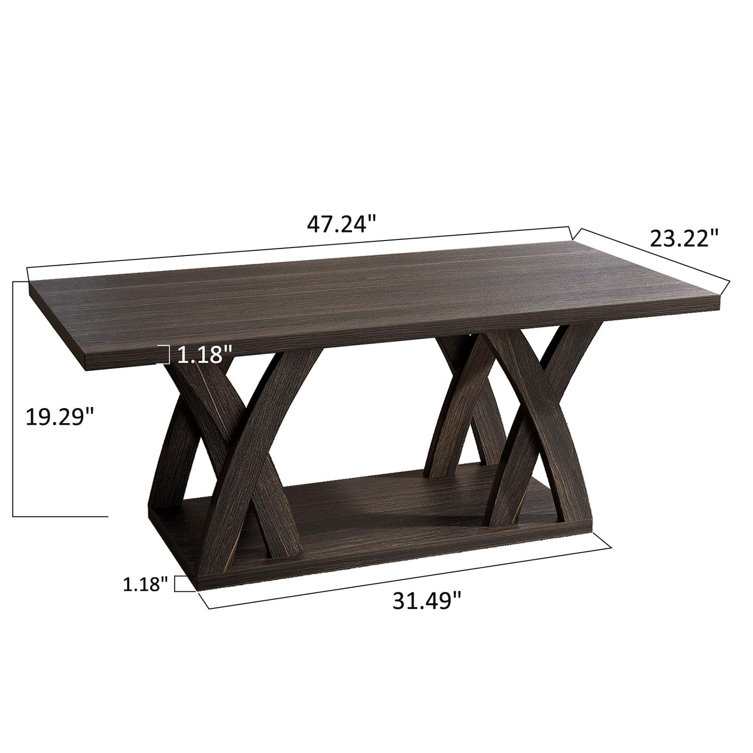 FROMJBEST Farmhouse Coffee Table with Shelf, Wood Coffee Table for Living Room, Open Display Area,47” Dark Brown