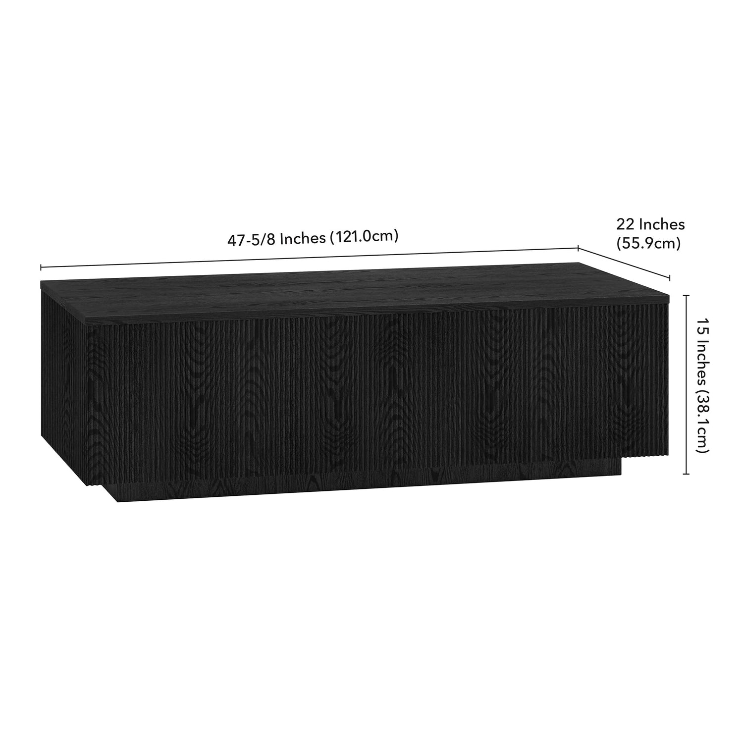 Details: Striking in its simplicity, this modern coffee table emphasizes clean lines and a straightforward aesthetic. The table's simple design is given extra dimension with mitered corners and a plinth base. A natural wood-look finish and ribbed base adds texture and tonal variation to your space. Easy to assemble and easy to style, it's the perfect pick for a quick update to your living room, family room, or office.