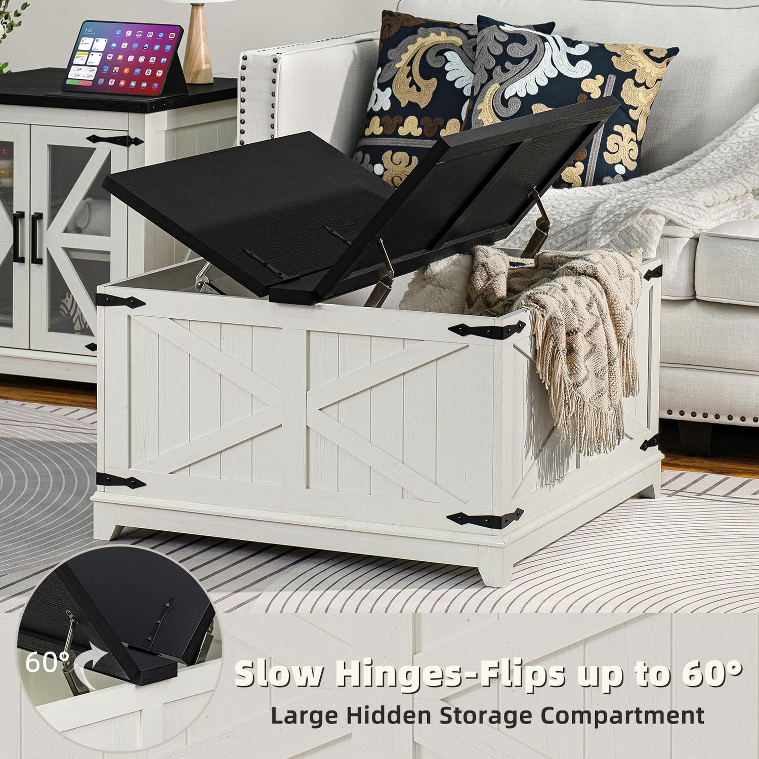 Joaxswe Farmhouse Coffee Table with Hidden Storage Compartment, Antique Black & White Square Large Center Table for Living Room, Wood Rustic Wide Coffee Tables with Hinged Lifting Tabletop for Home