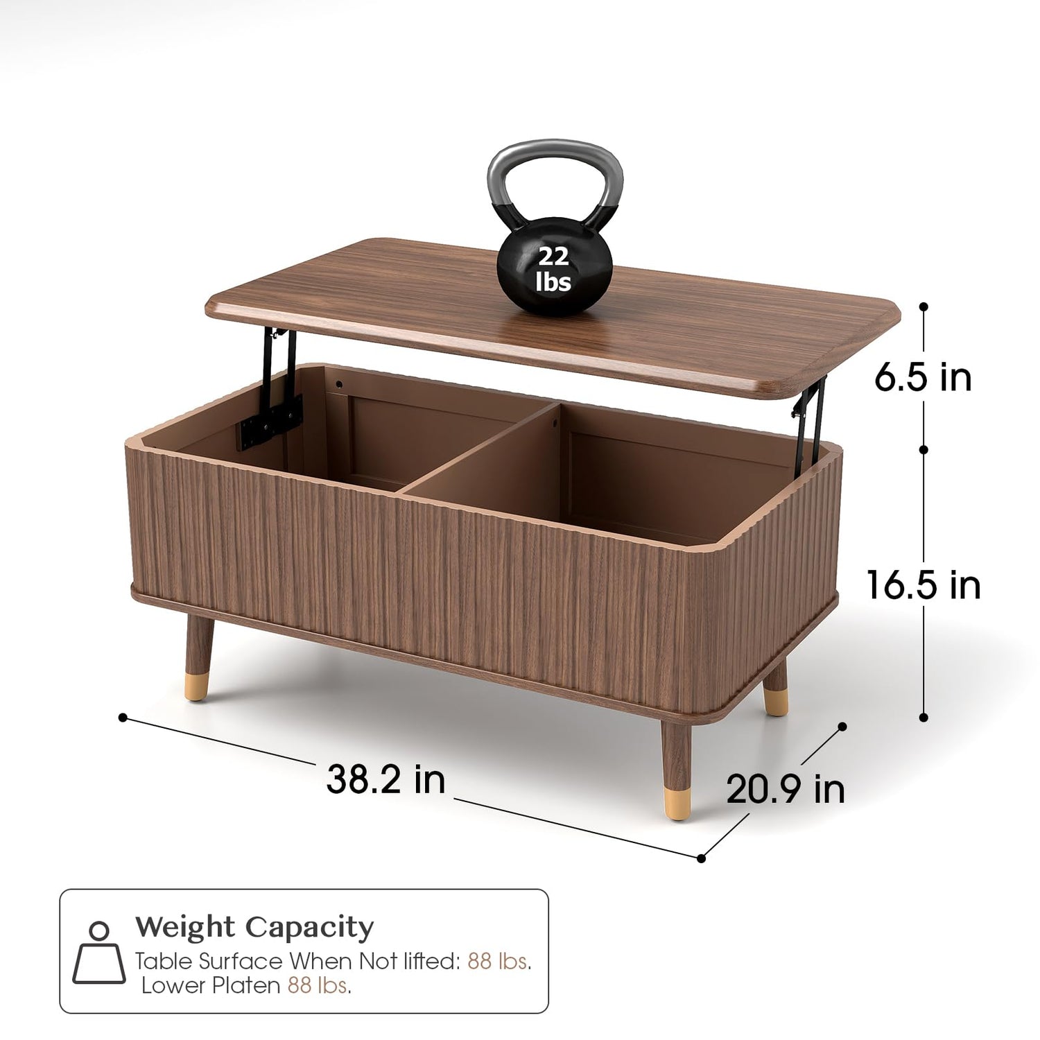 JOINICE,Lift Top Coffee Table with Storage,Mid Century Modern Coffee Table,Fluted Wood Coffee Table,Multi-Functional Center Table for Living Room,Convenient for Dining,Gaming,or Working,Walnut