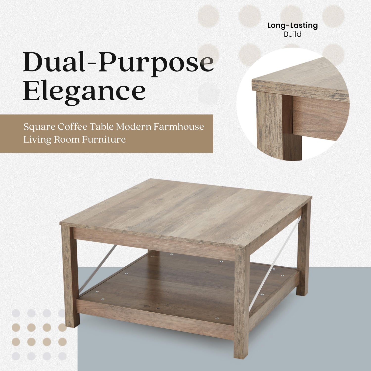 JOMEED 31.5 Inch Square Coffee Table with Bottom Storage Shelf, Modern Farmhouse Style Living Room Office Accent Table Furniture, Beige