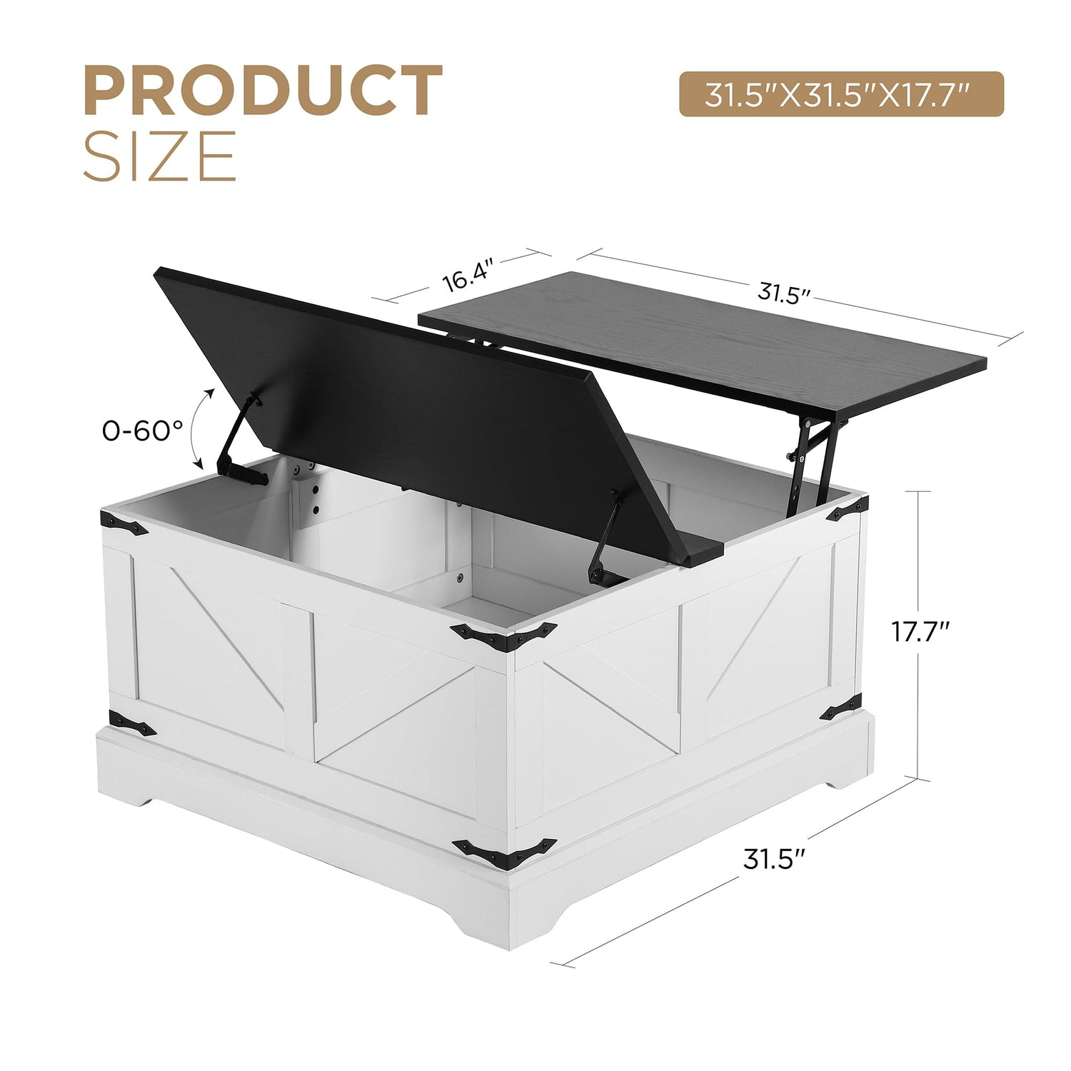 KIGOTY Lift Top Coffee Table with Storage, 31.5" Square Coffee Table, Rustic Storage Coffee Table,Farmhouse Center Table with Hidden Compartment for Living Room,White