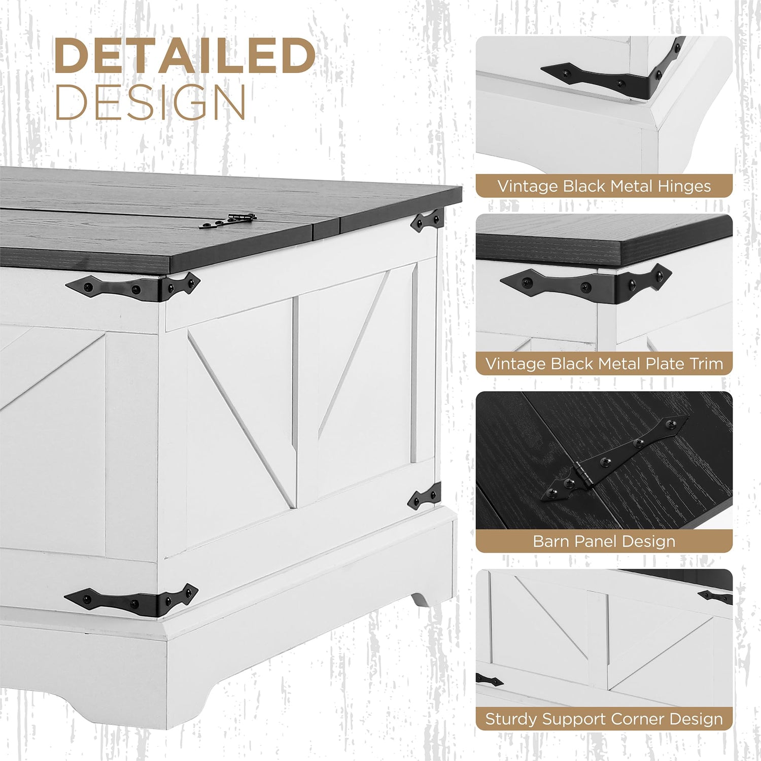 • Farmhouse Coffee Table: 31.5 inch tabletop splits into two sections ,one flip top, one lift top for enhanced functionality. Crafted from original wood grain with metal corner decor, this square table exudes farmhouse charm and complements vintage decor