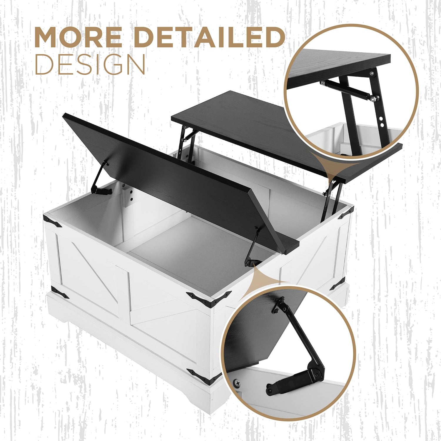 • Hidden Storage Cabinet: Coffee table with lifting top features a hidden storage compartment that lifts up to reveal ample space for storing games, books, blankets, and more. Maximize space and keep essentials neatly tucked away with this functional center table